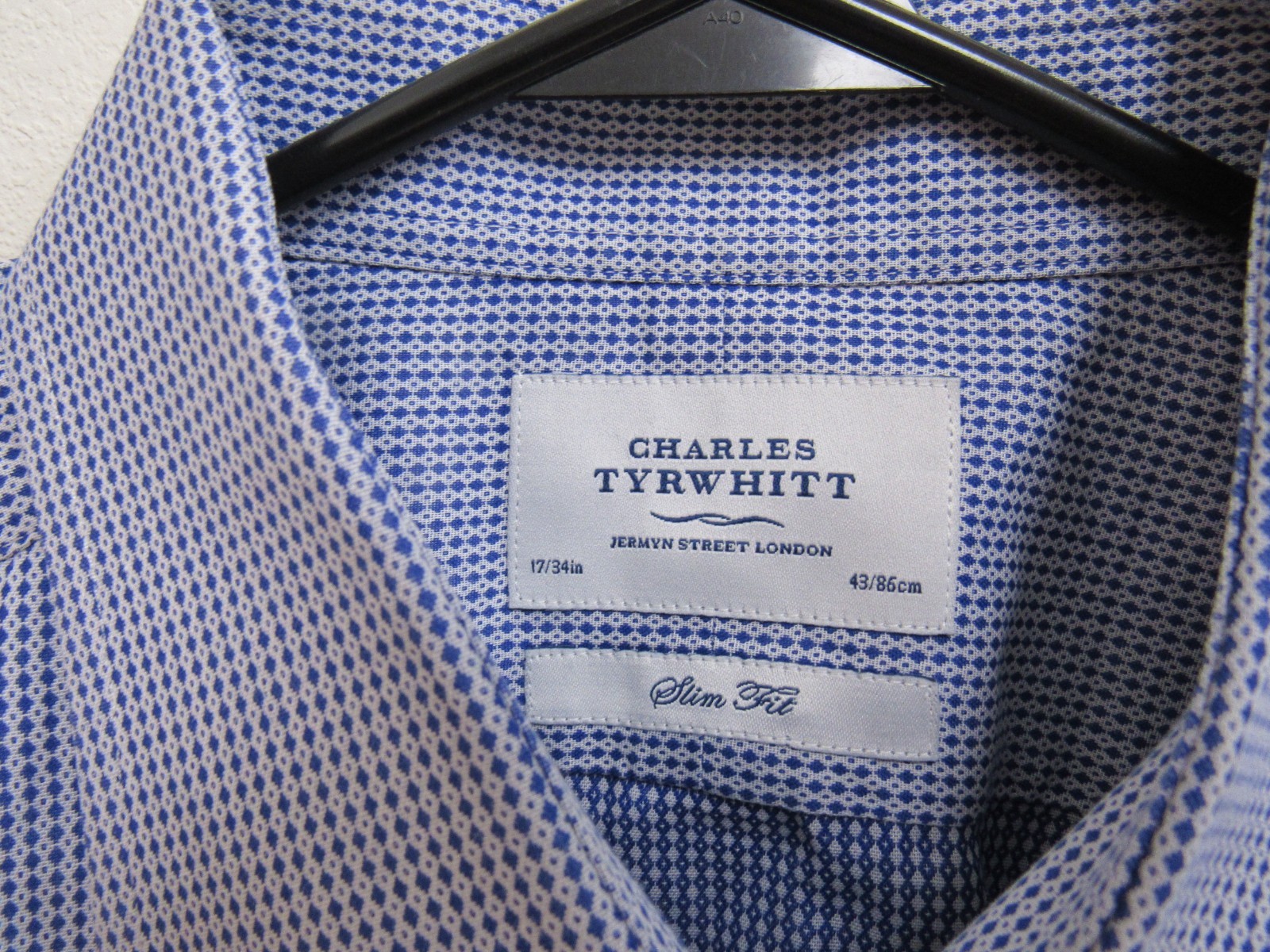 как выглядит Charles Tyrwhitt Slim Fit Blue Geometric Long Sleeve Button-Up Shirt 17-34 фото