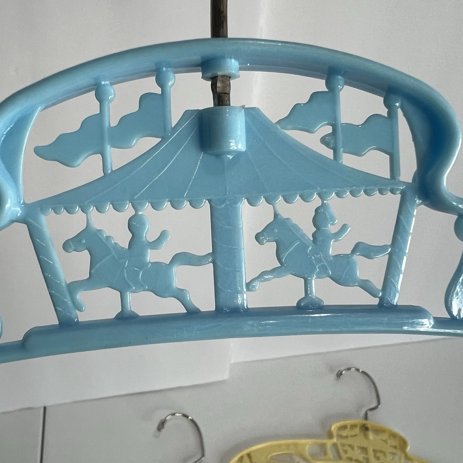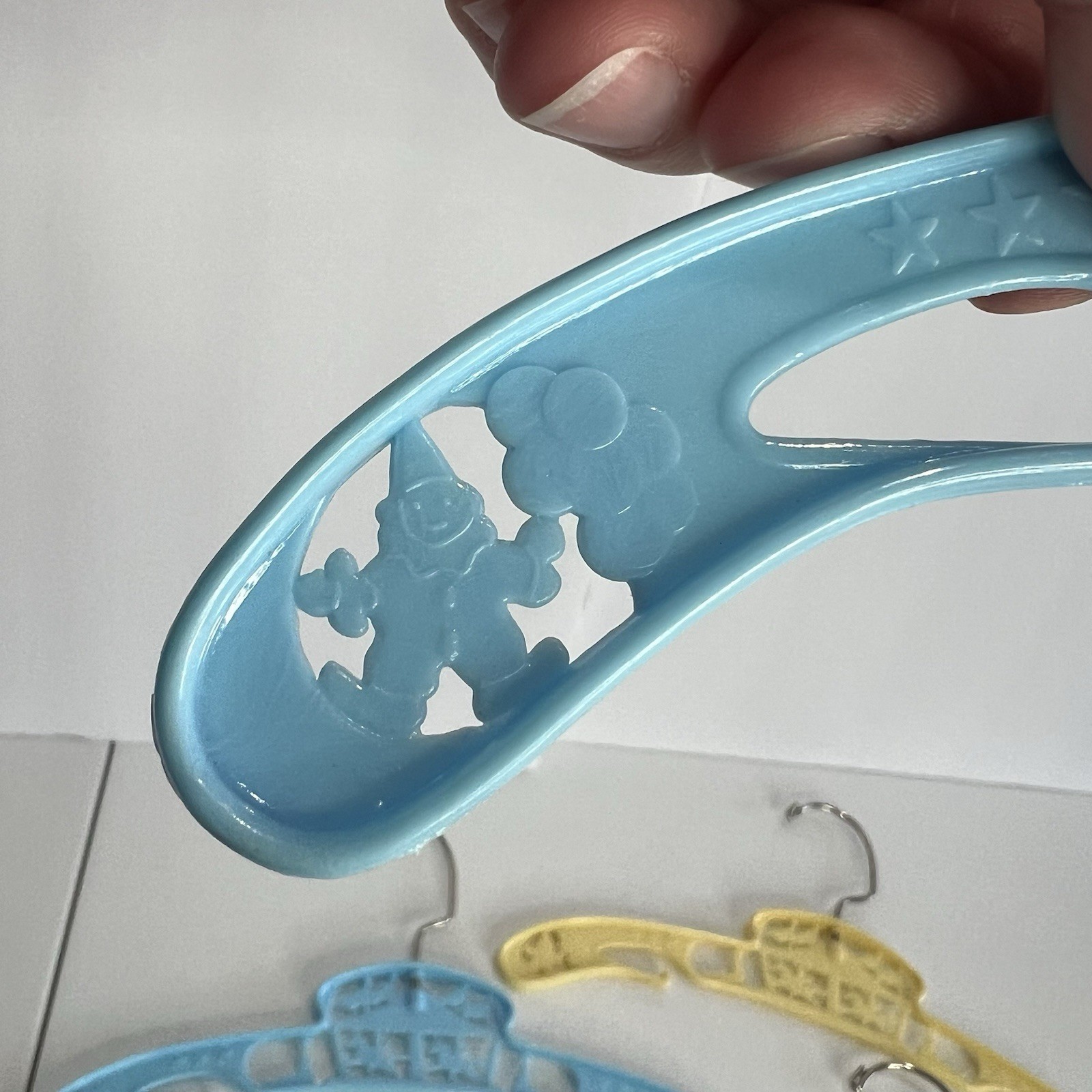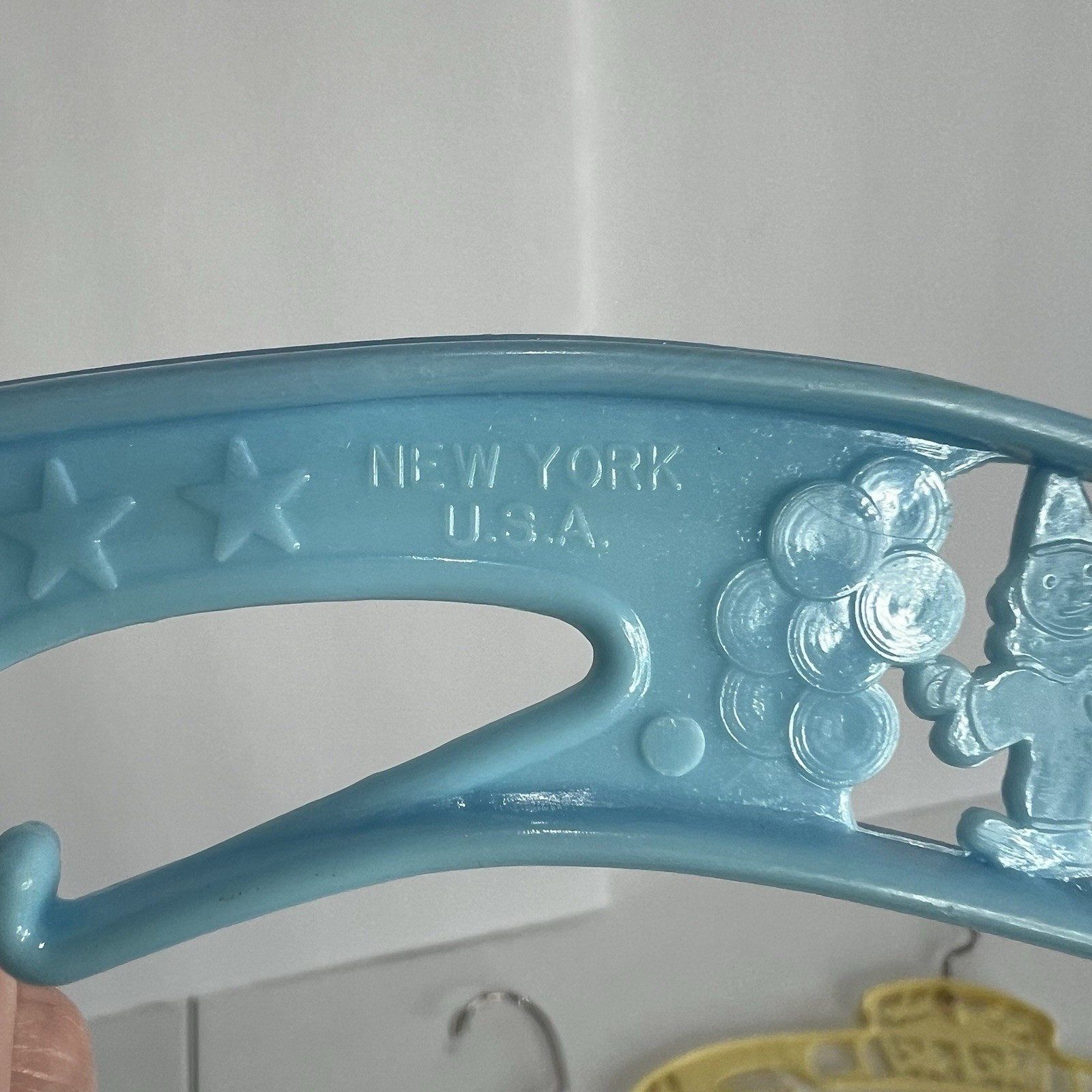 как выглядит 4 Baby World Co Blue Yellow Plastic Childs Hanger Vtg New York 50s 60s Circus фото