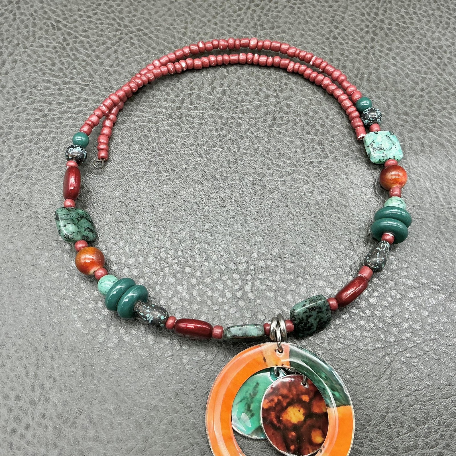 Necklace Multicolor Stone Beaded Round Pendant Womens Boho Statement Jewelry
