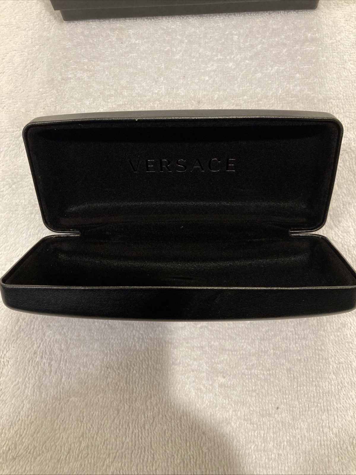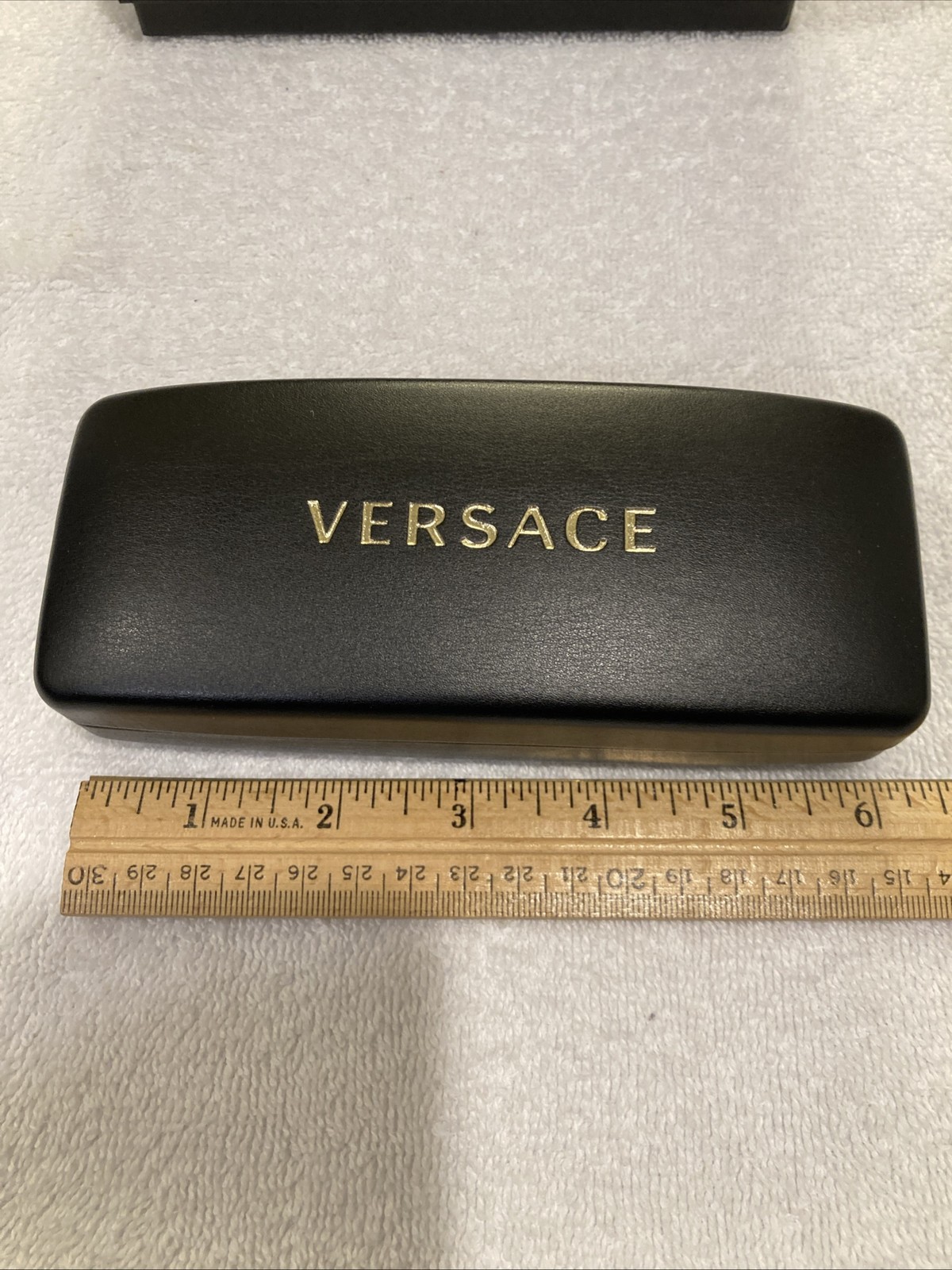 Brand New Versace Authentic Black Hard Eyeglass Case W/ Box Cleaning Cloth