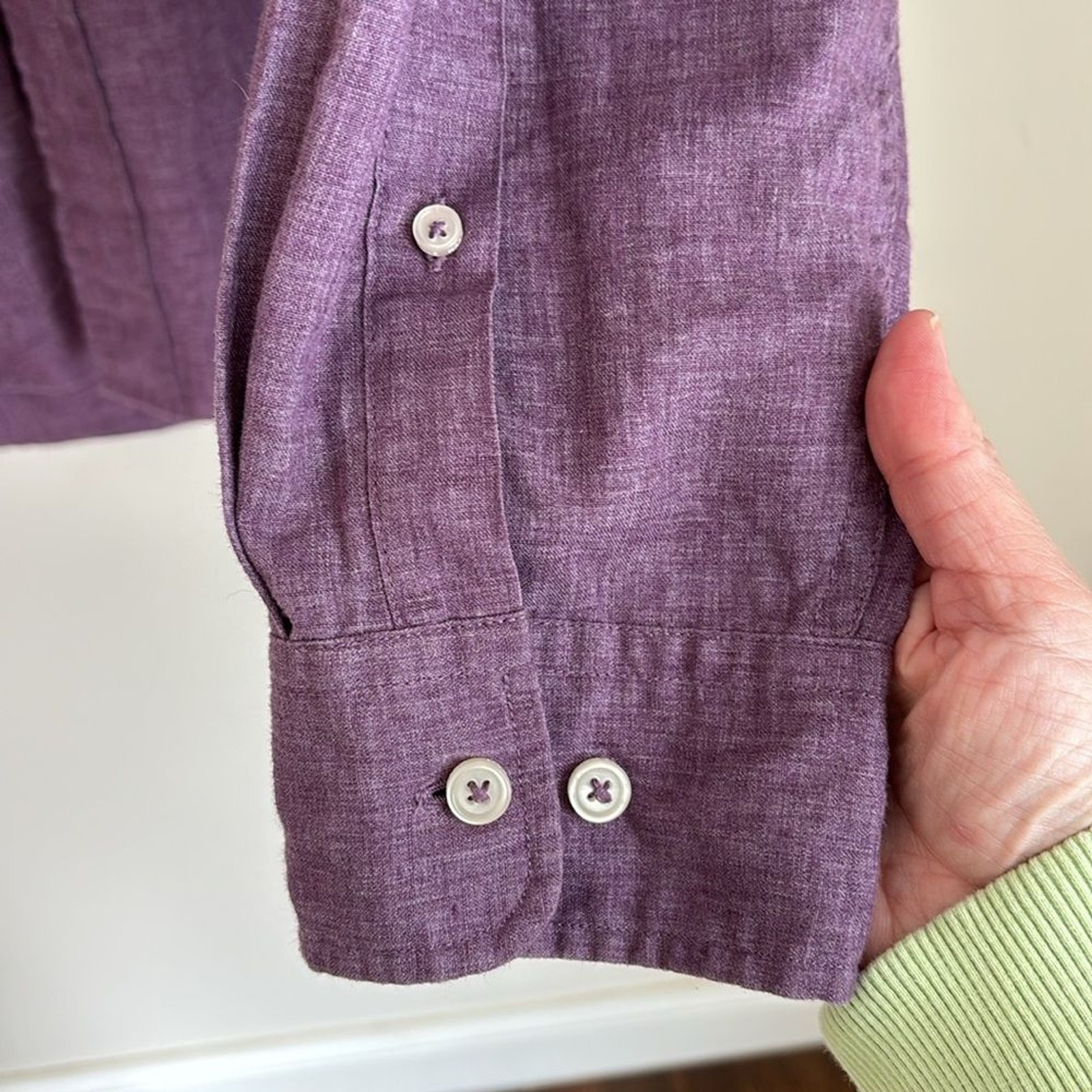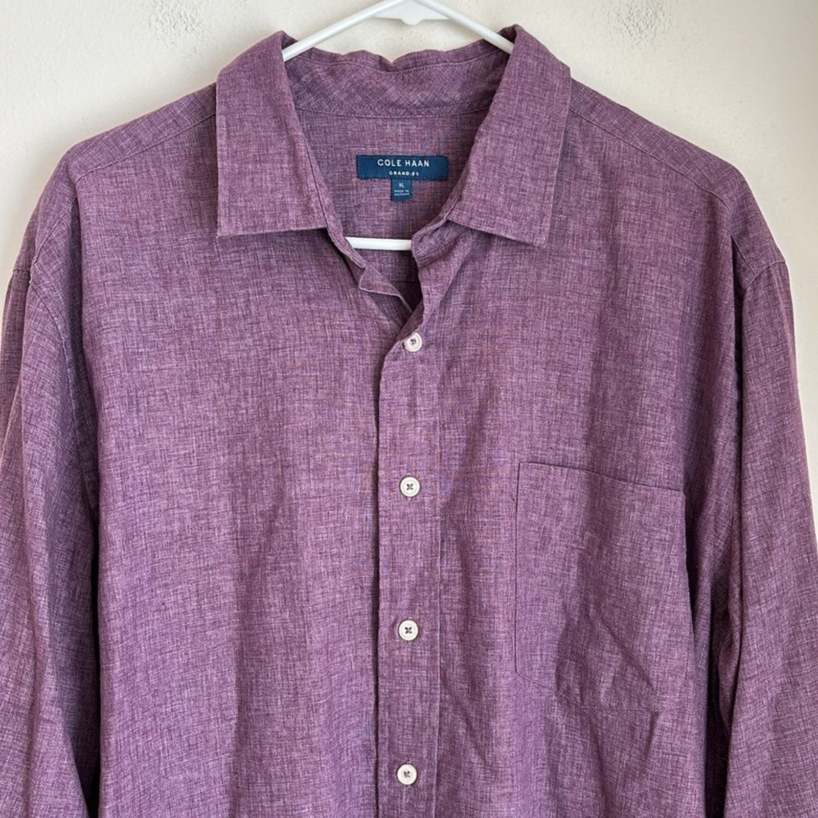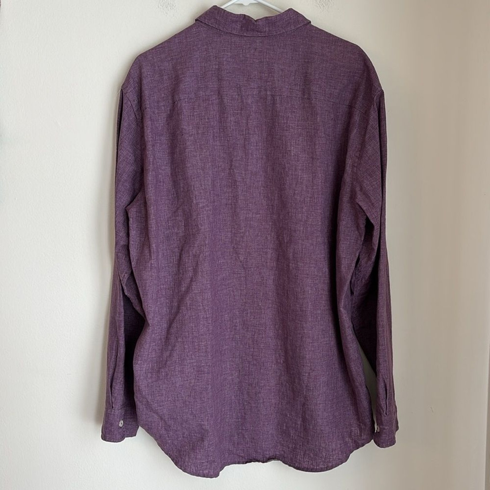 как выглядит Cole Haan Mens linen blend Purple Button-Up button down casual Shirt XL NWOT фото