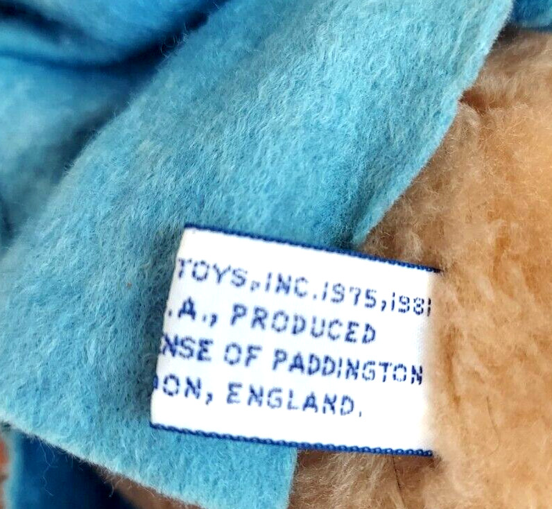 Paddington Bear Eden Toy 13 1975-1981 Stuffed Teddy Plush Yellow Hat Blue Coat