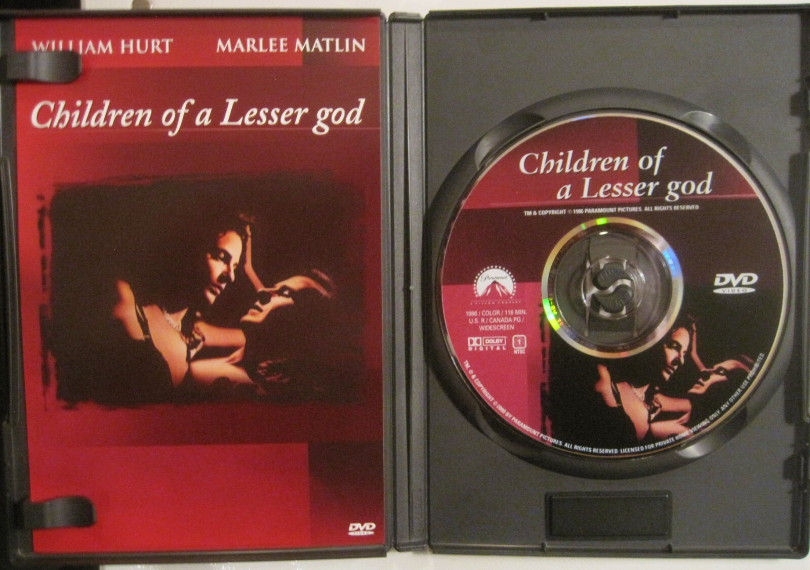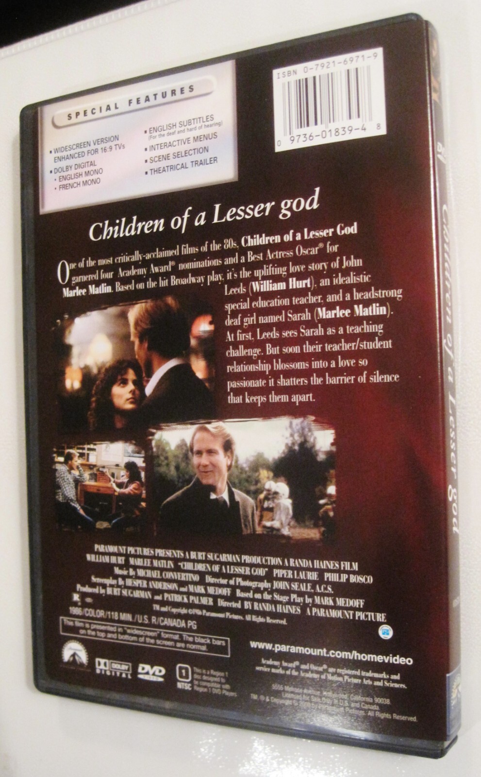 как выглядит CHILDREN OF A LESSER GOD, Marlee Matlin, William Hurt, 1986, Paramount USA DVD фото