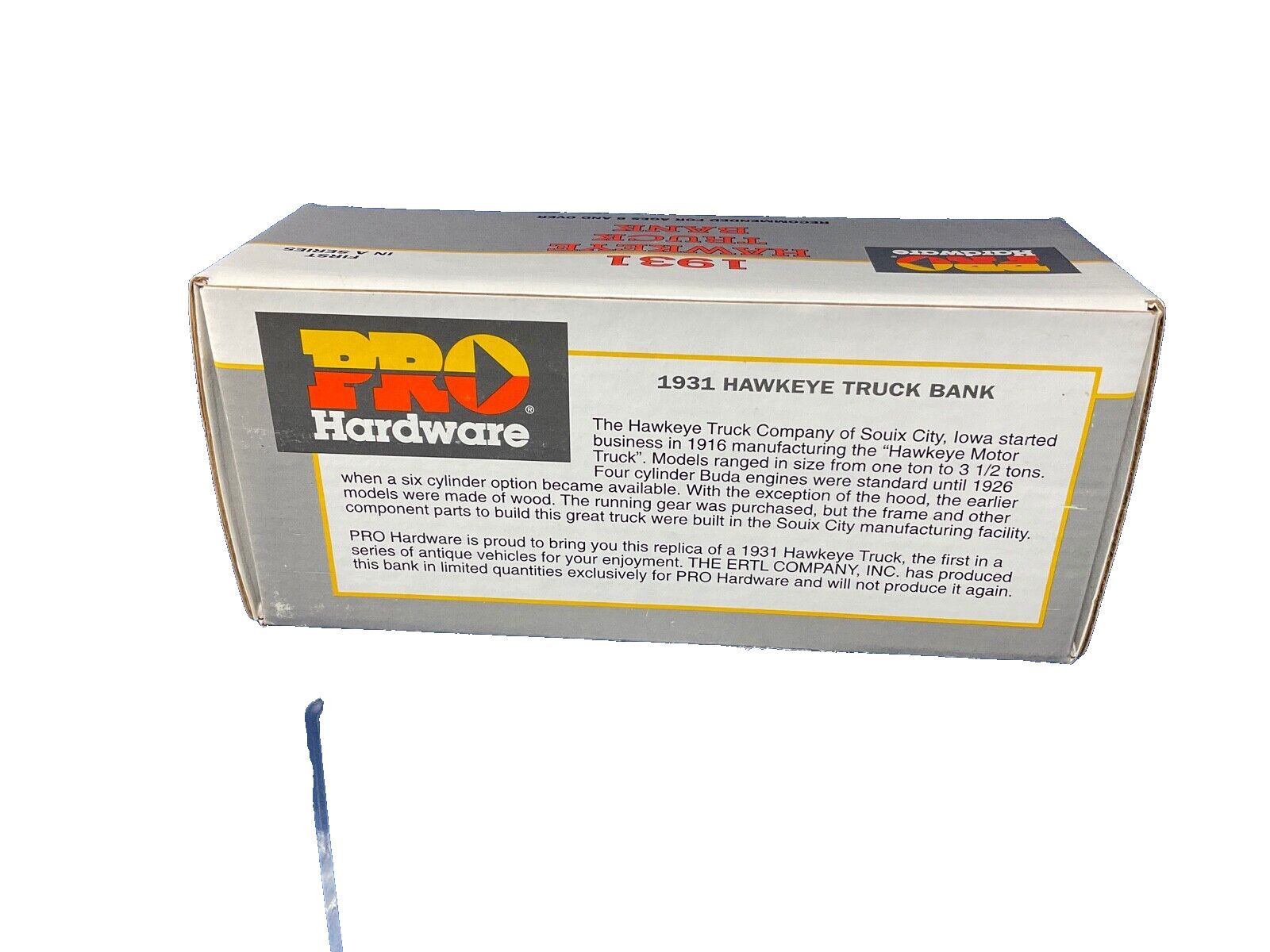 1993, ERTL, 1931 Hawkeye Pro Hardware Truck Bank w/Key, NIB, 1st in Series