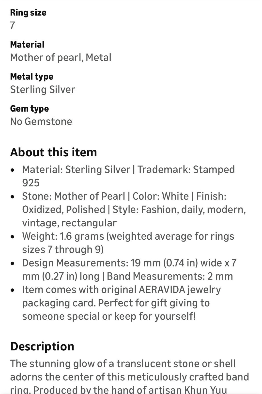 Ring Size: 7