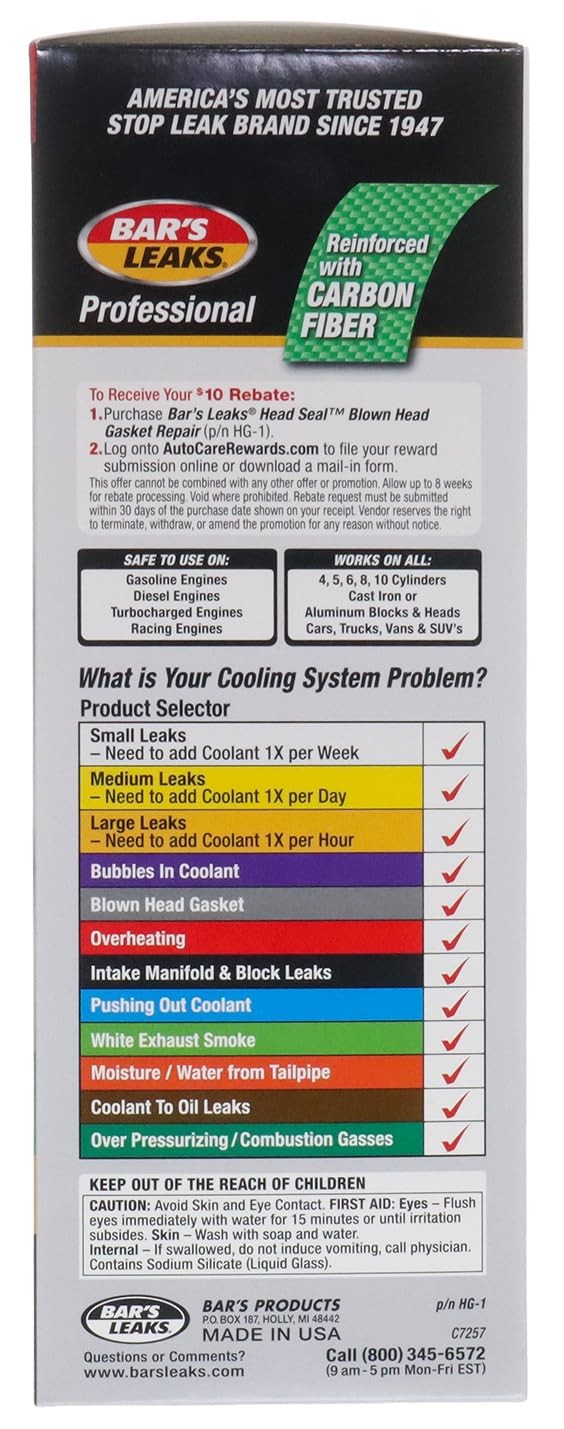 Bar's Leaks HG-1 HEAD SEAL Blown Head Gasket Repair Pack of 1, Gray