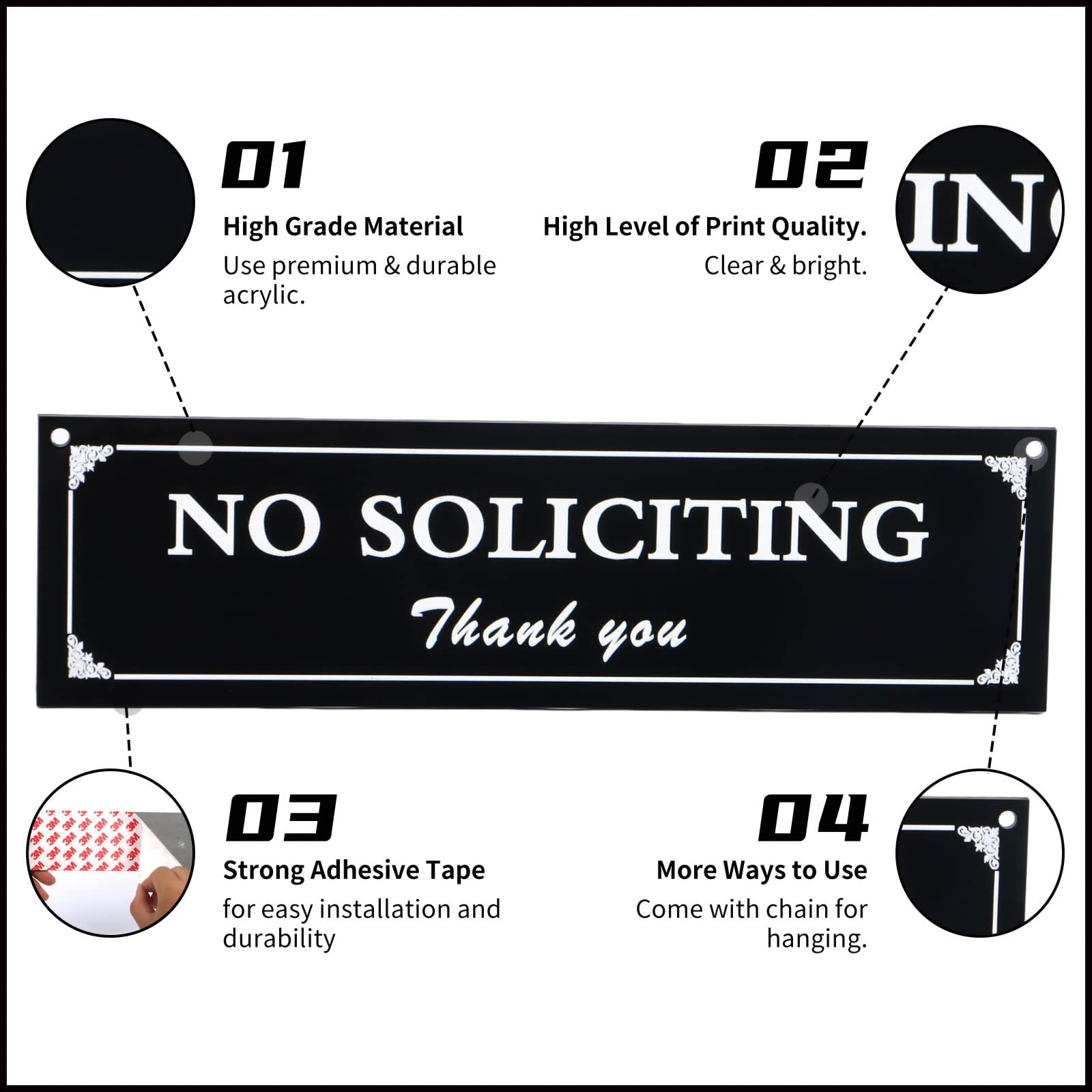BEDEONE No Soliciting Sign for House, Strong Self Small Signage, BLACK