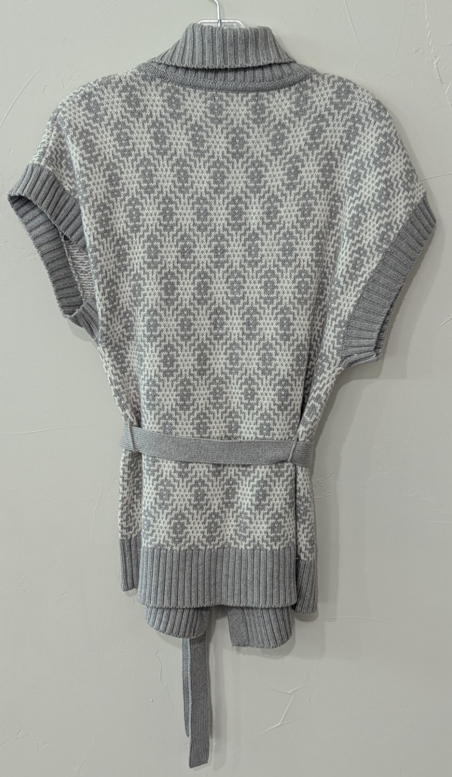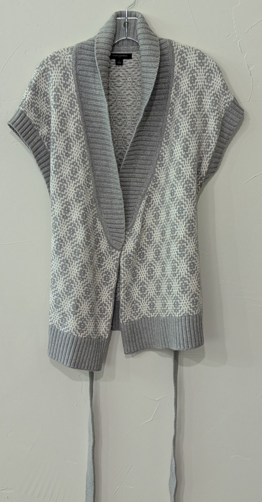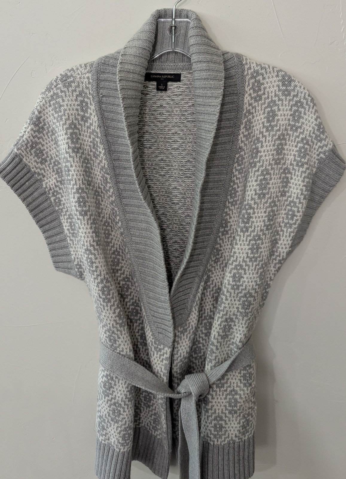 как выглядит Banana Republic Womens Sweater Cardigan Small Gray White Belted Short Sleeve фото