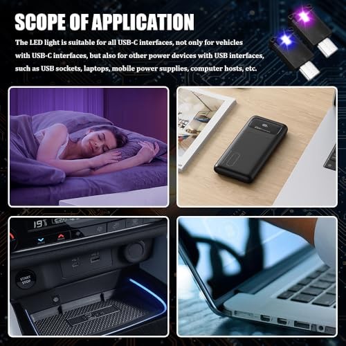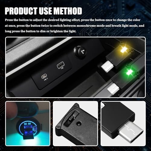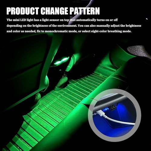 USB Type C LED Ambient Light, USB Car Light, 8 Colors RGB Dynamic Gradient 2PCS