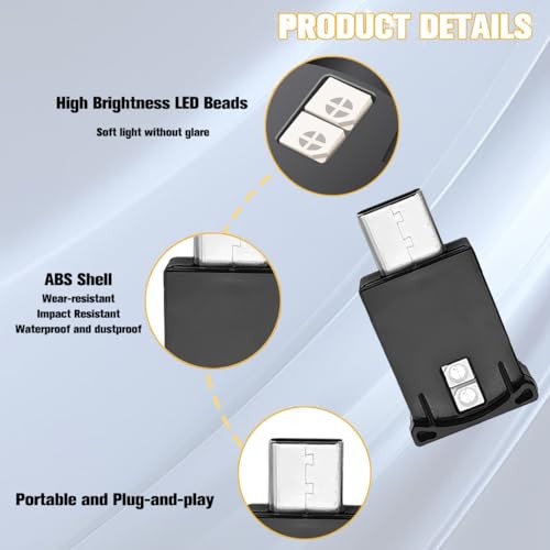 2PCS Car USB Type C LED Ambient Light, 8 Colors RGB 5V Dynamic 2PCS USB Type C