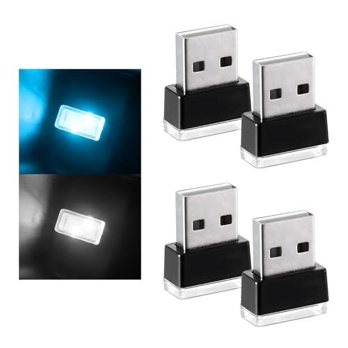 4PCS USB LED Car Interior Atmosphere Lamp, Plug-in USB Interface White Ice Blue
