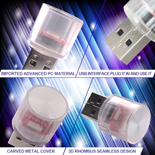 USB LED Car Interior Night Light, 2 Pcs Universal Mini USB LED Decoration