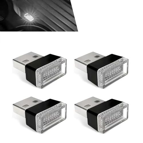 4PCS USB LED Car Interior Atmosphere Lamp, Portable Mini USB LED Light, White