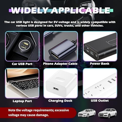 Car USB Night Light with 13-in-1 Design,Touch Adjustable USB Car Light with 7