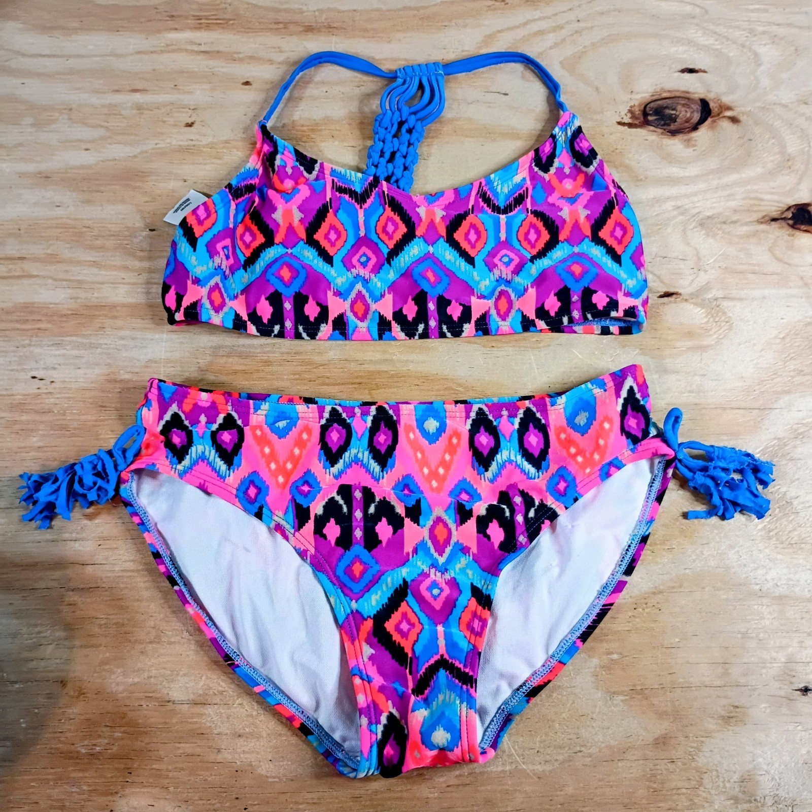 Art Class Girls 2-Piece Bikini Swimsuit Size L 10/12 Pink Blue Ikat Boho Macrame