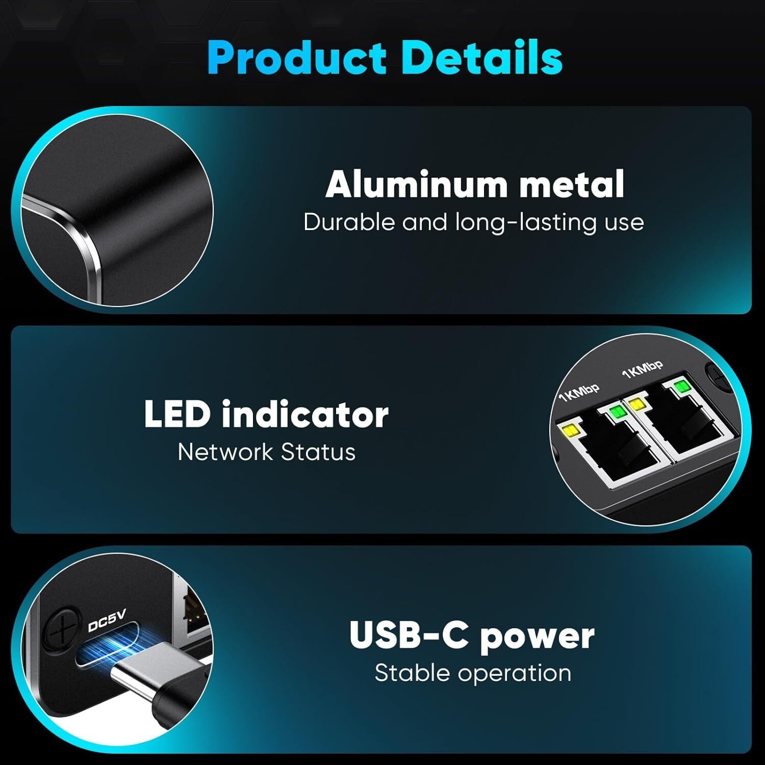 RJ45 Gigabit Ethernet Splitter 1000Mbps LAN Network Internet 1 to 2 Out Adapter