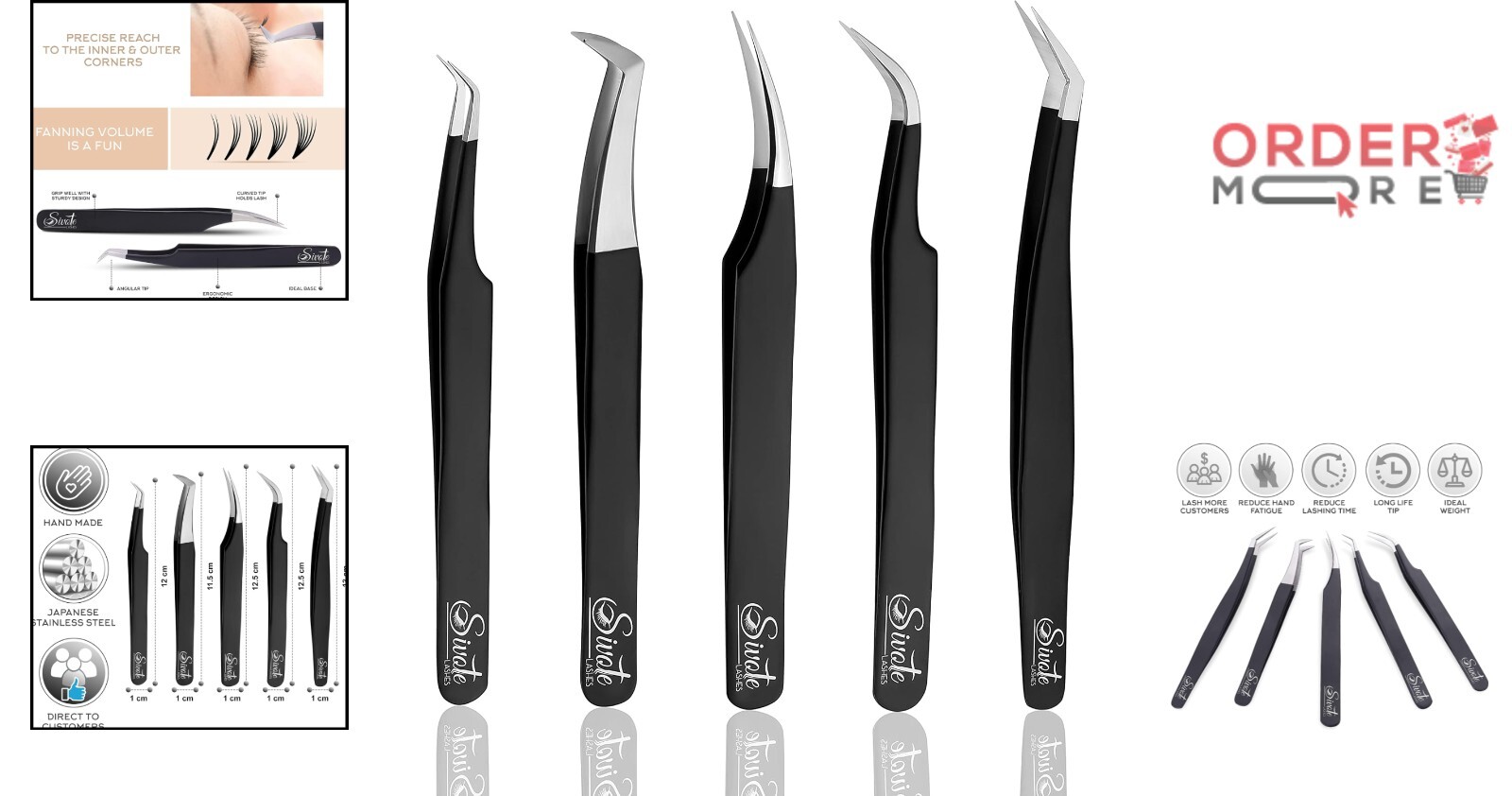 Eyelash Extension Tweezers Stainless Steel 5-Pack Ergonomic Precision Use