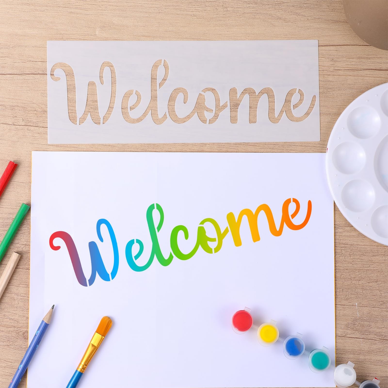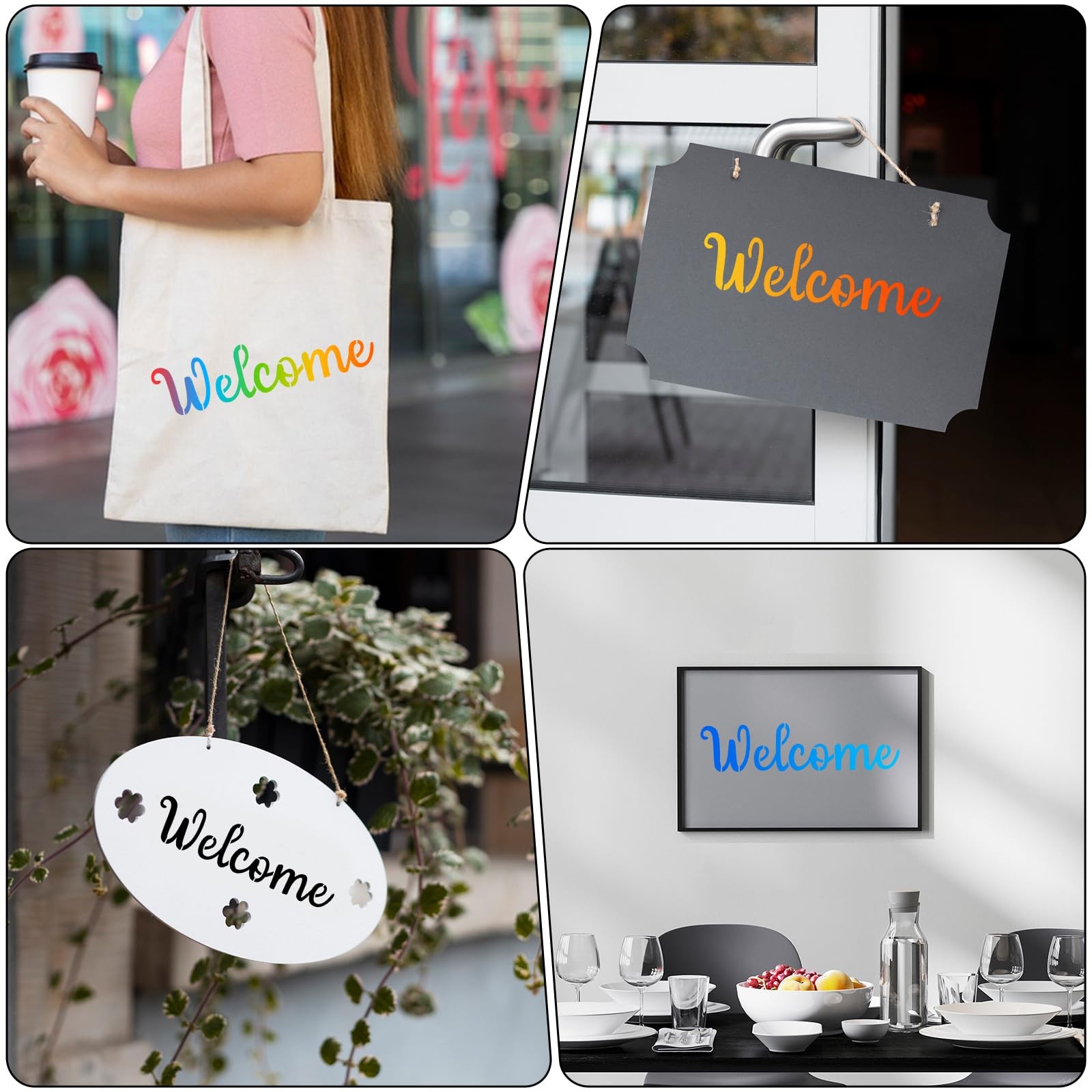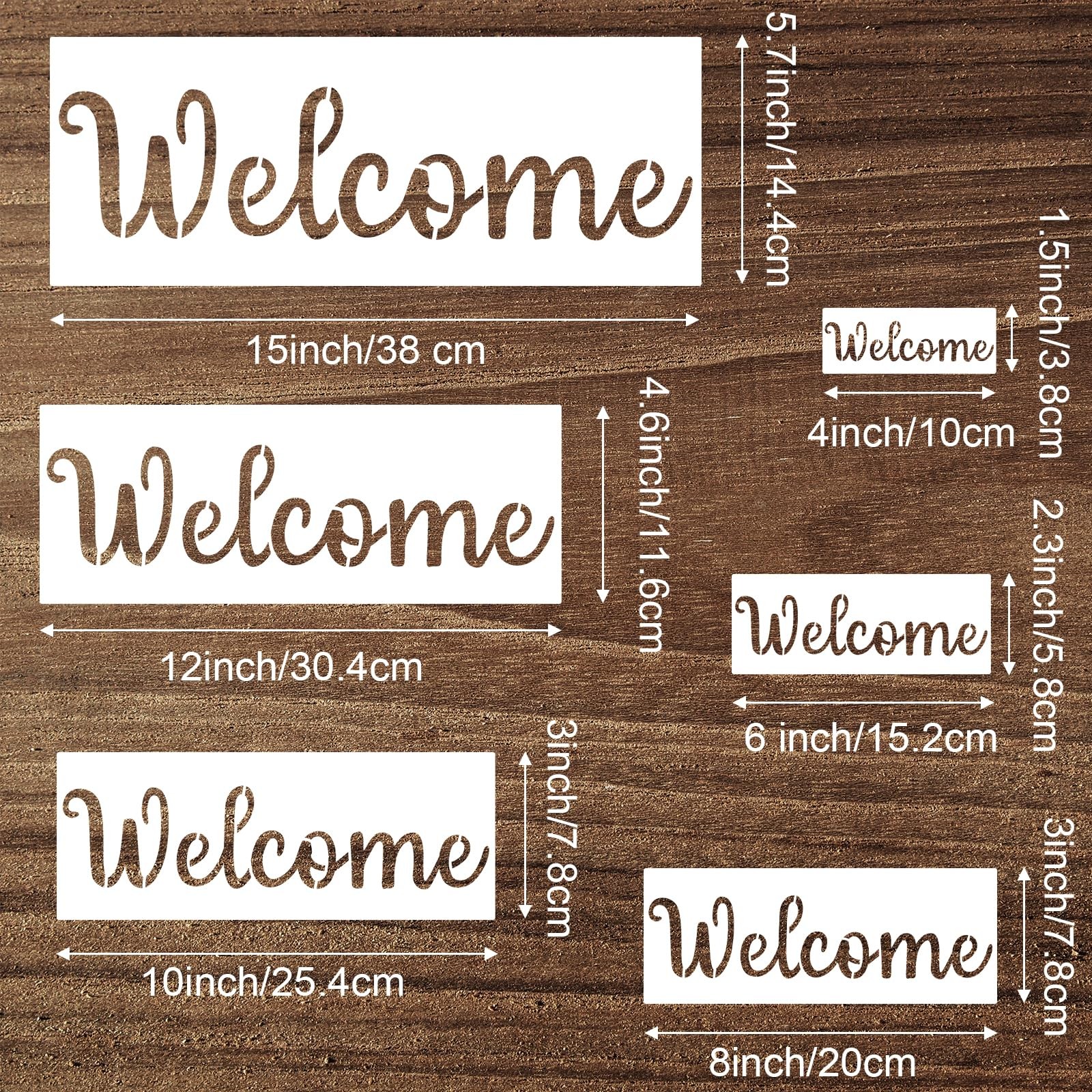 Heclia Welcome Stencils for Painting 6 PCS 15 inches x 5.67 inches, white