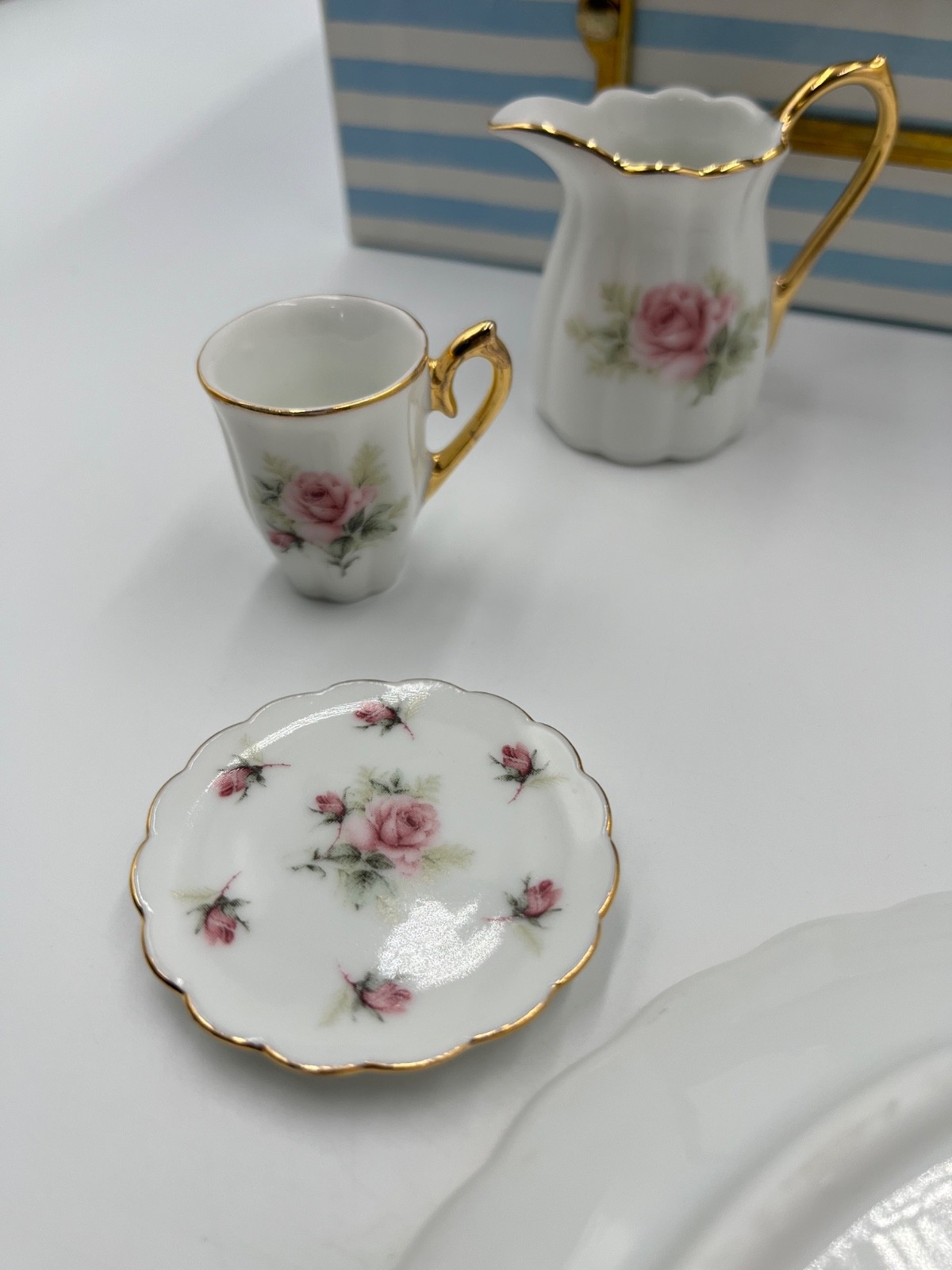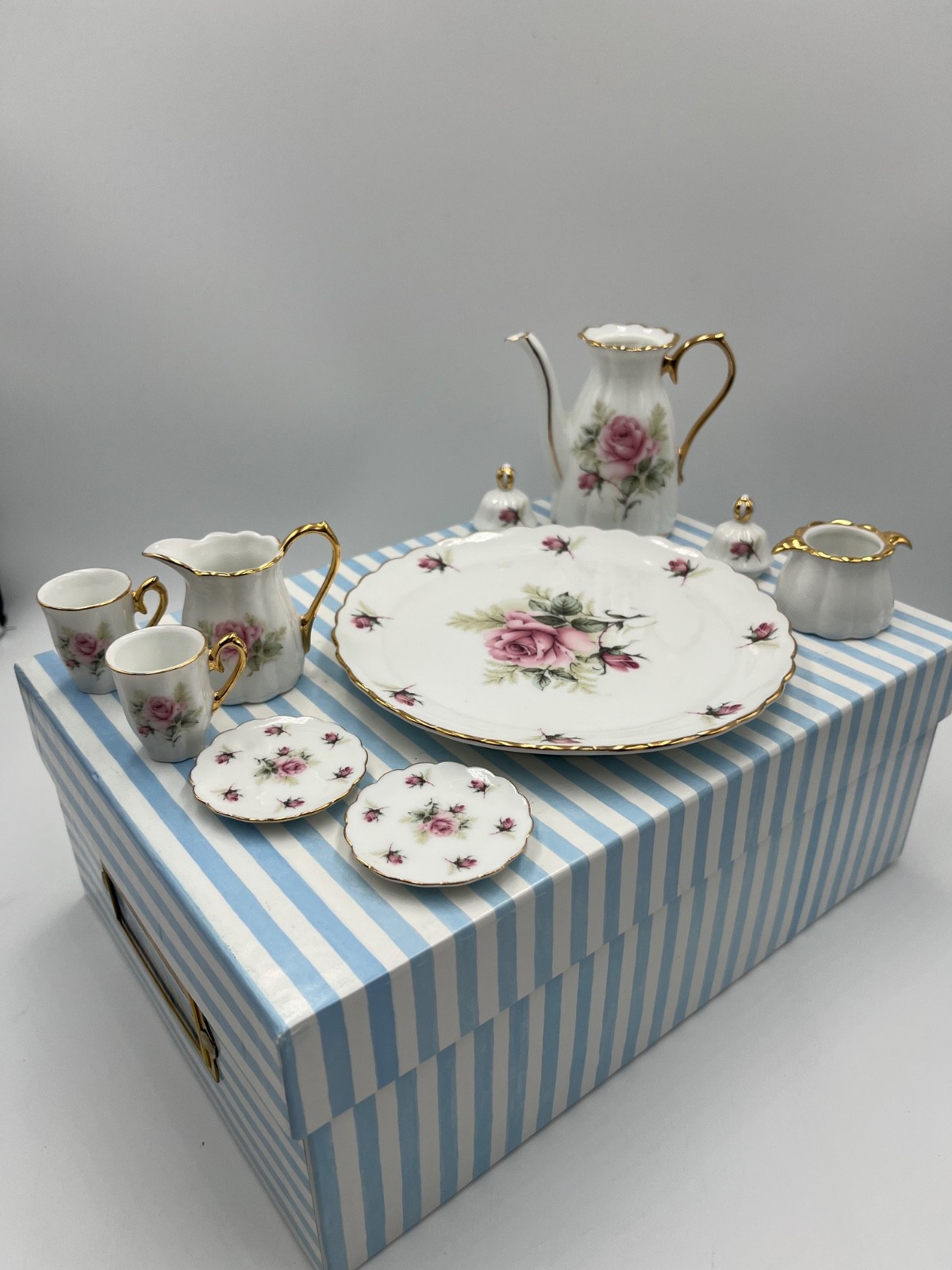10 piece Ceramic Doll Tea Set Mini Tea Set by GANZ Floral Rose Gold Decoration