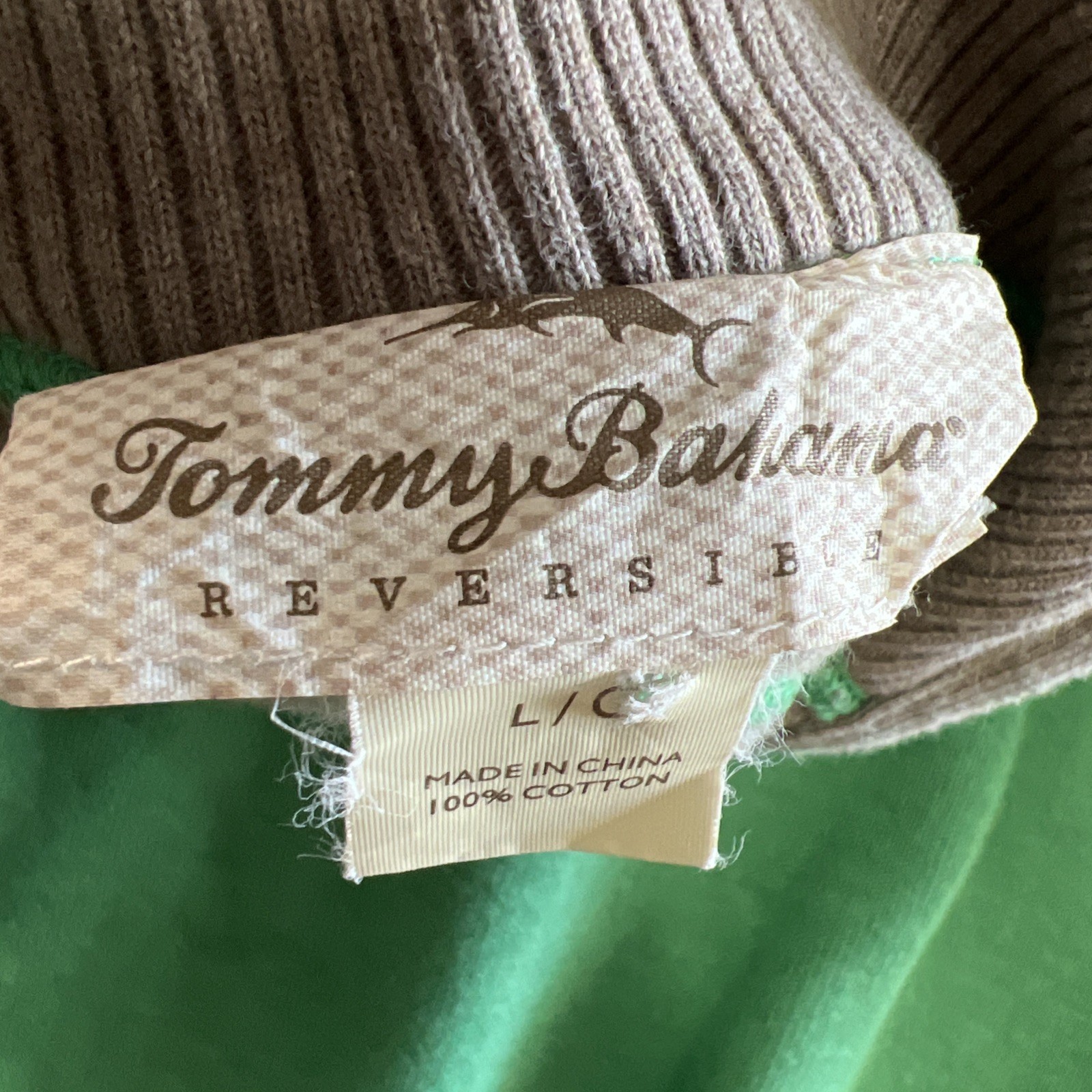 как выглядит Tommy Bahama Sweater Reversible Cotton Mens Size L Green-Gray 1/4 Zip Mock Neck фото