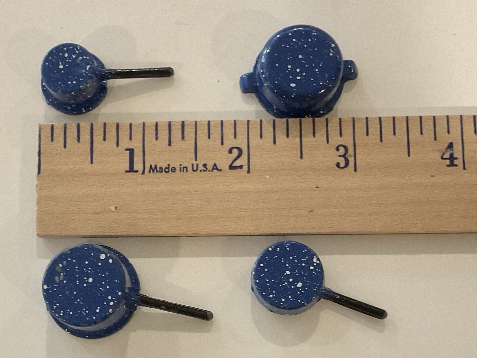 Miniature Blue Enamelware Cookware Set Of 4 Pots/pans Dollhouse