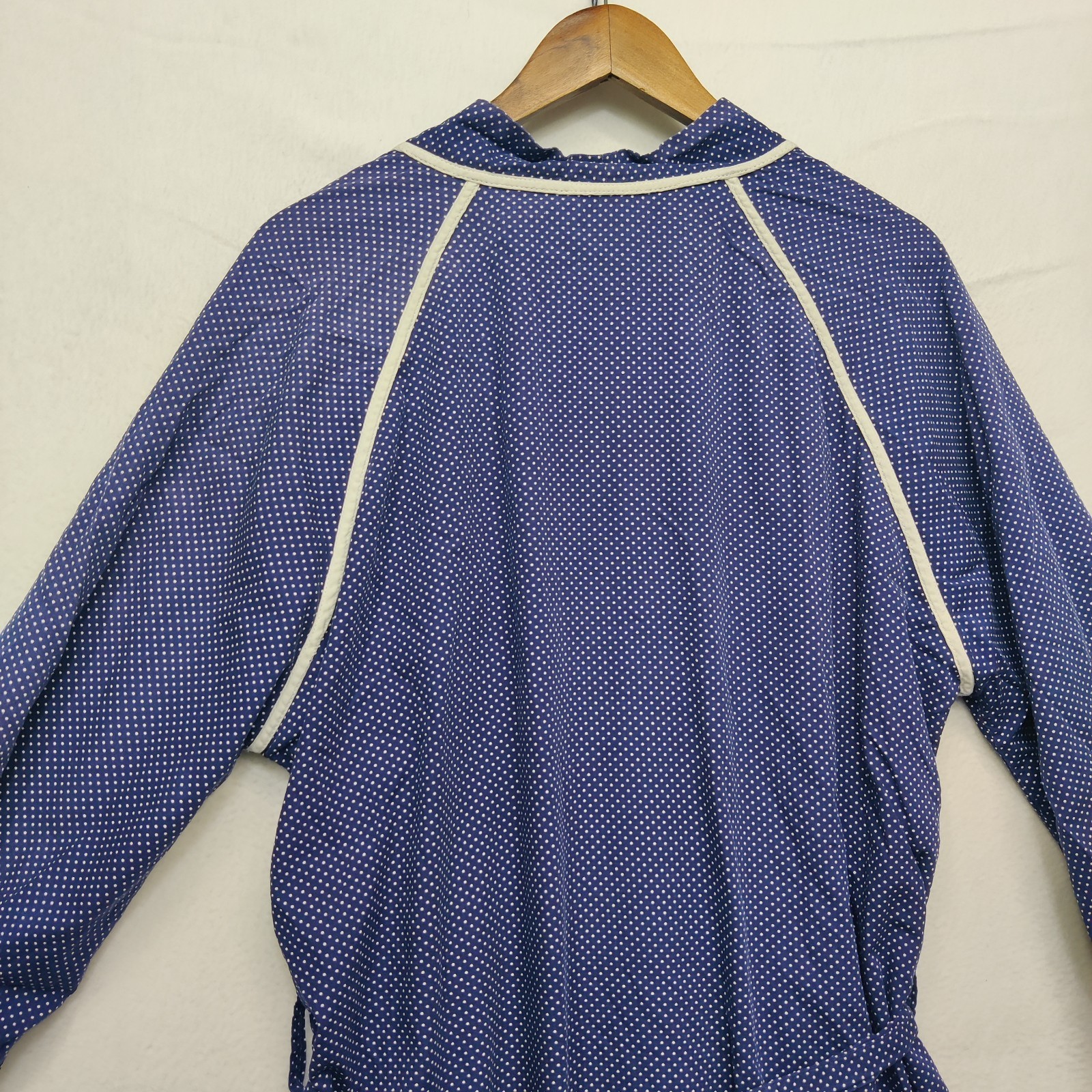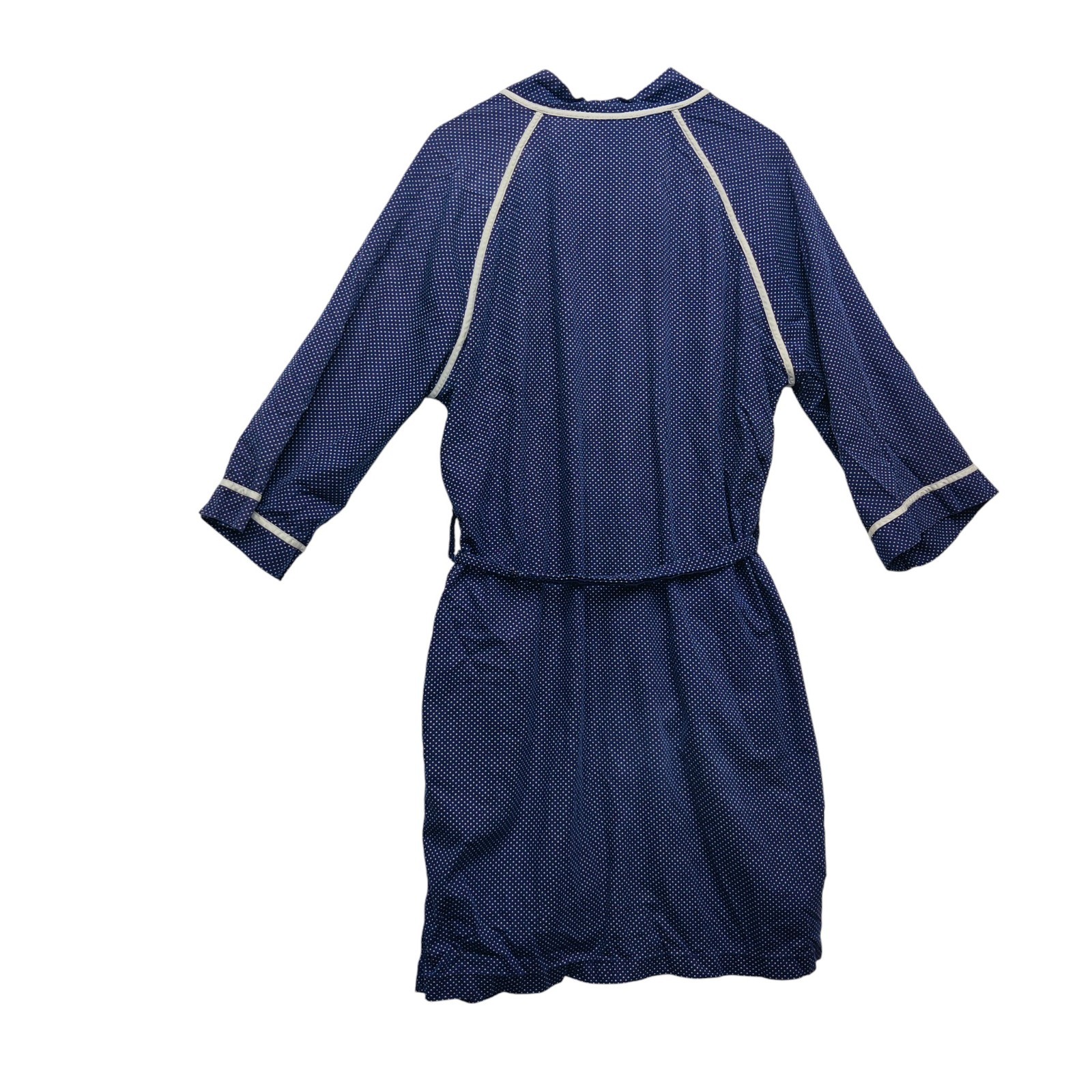 Vintage Christian Dior House Robe Mens M Navy White Polka Dot Belted Long Sleeve