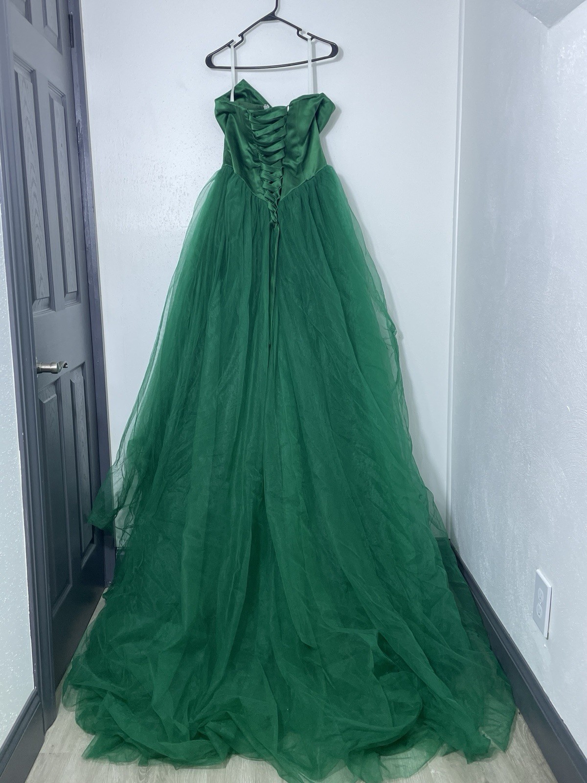 Strapless Emerald Tulle Basque Waist Gown Prom Dress Quincea era Dress Size 10