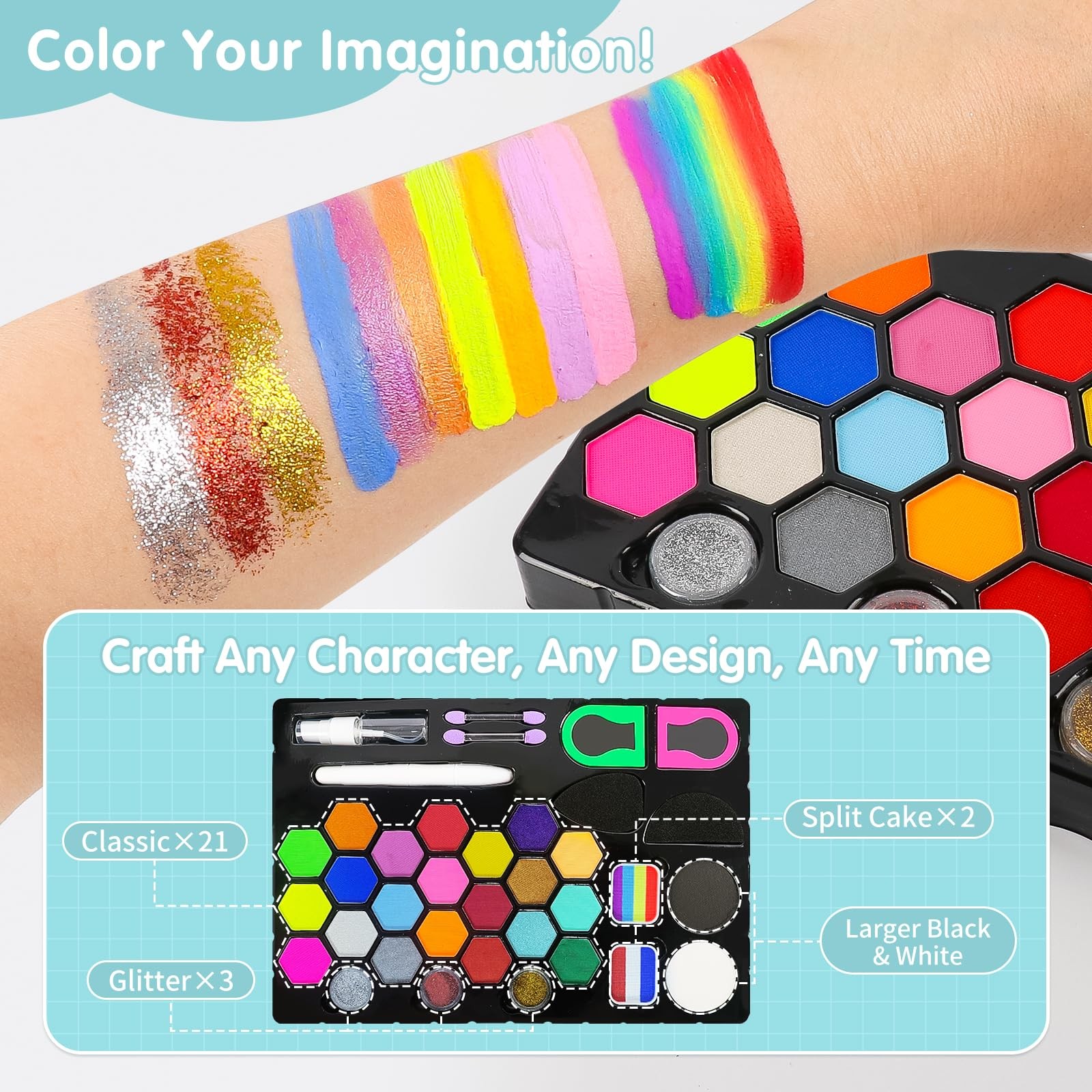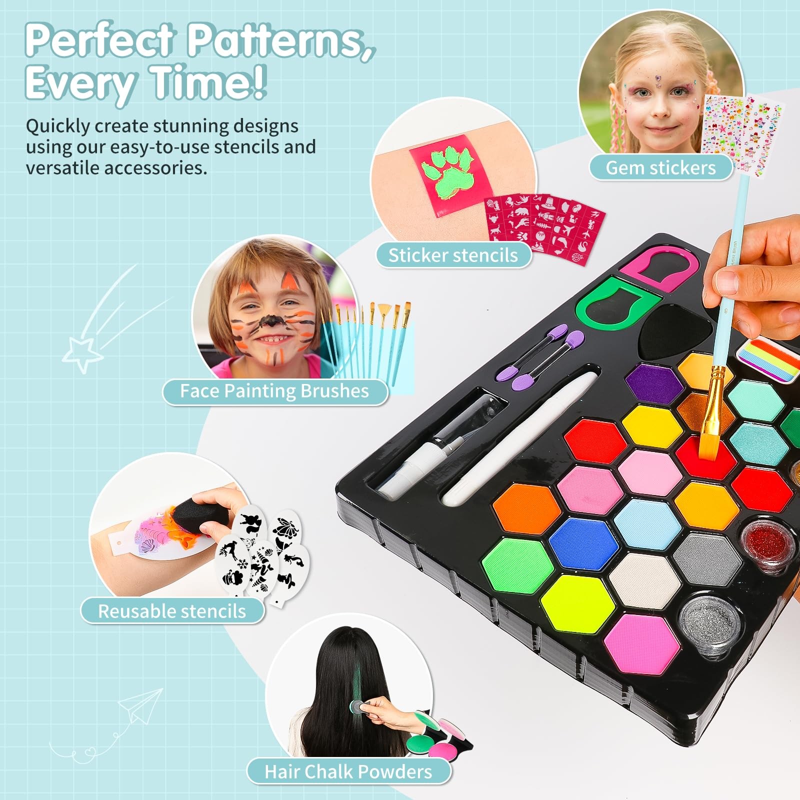 Face Painting Kit for Kids 24 Colors Water-Based Non-Toxic Face Paint Palette...