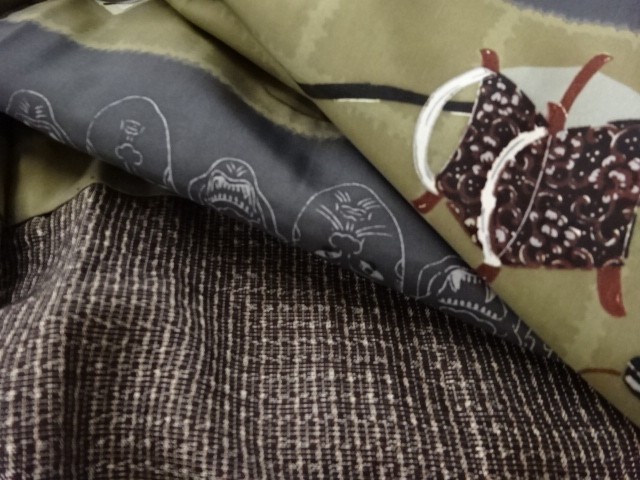как выглядит 7671784: JAPANESE KIMONO / ANTIQUE MENS HAORI / SILK / TSUMUGI / NOH MASK linin фото