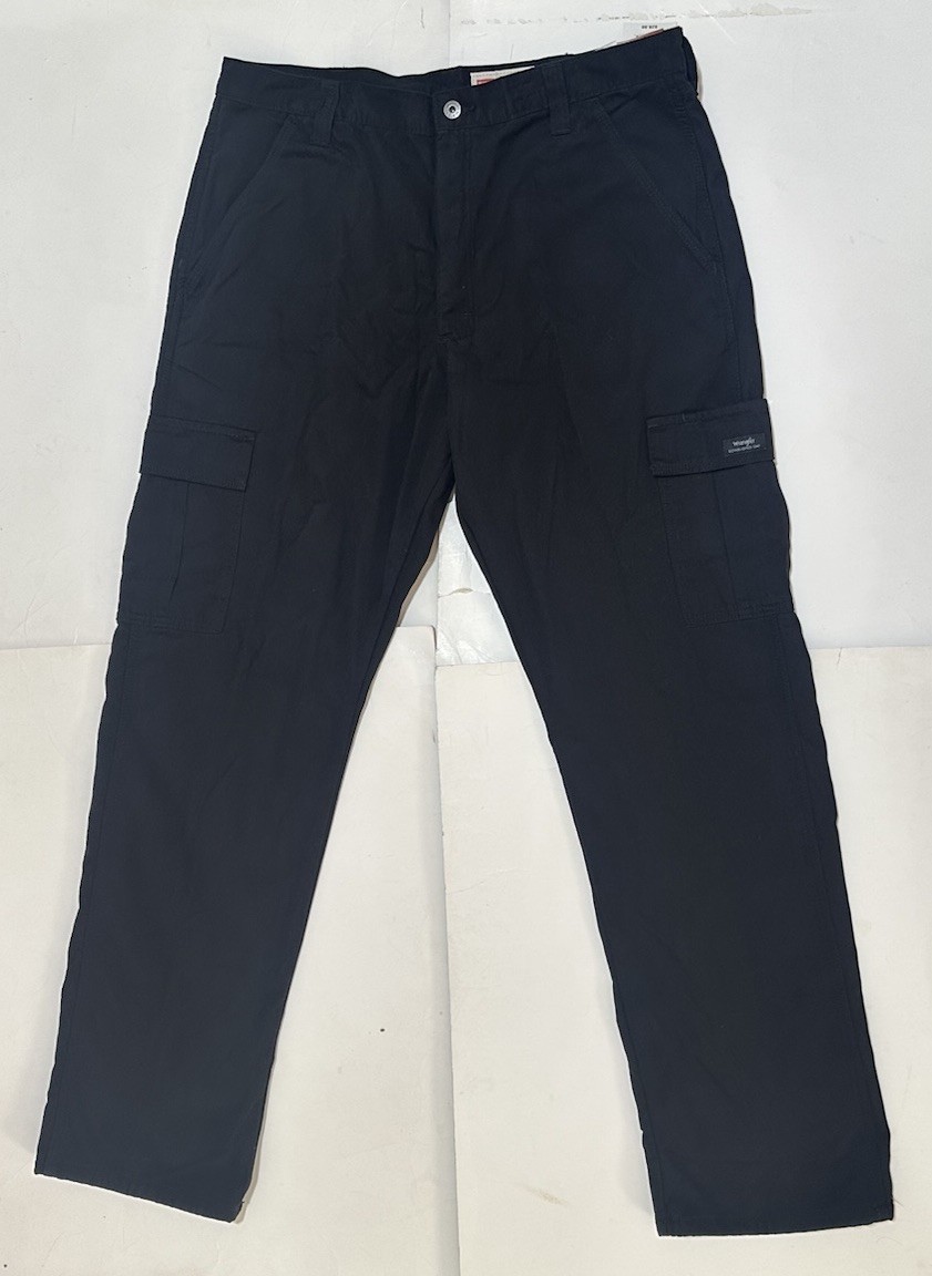 Men's Wrangler Fleece Lined Cargo Pants Relaxed Fit Straight Leg Blk Sz 36 X 34