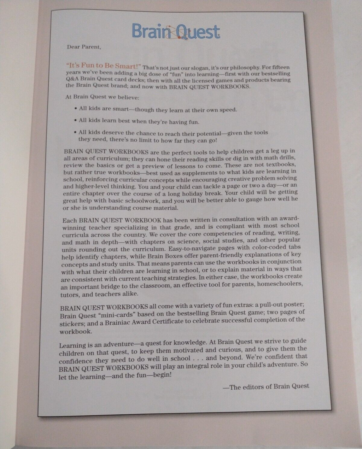 • Kindergarten Brain Quest Workbook Workman Publishing Whole Year Homeschool