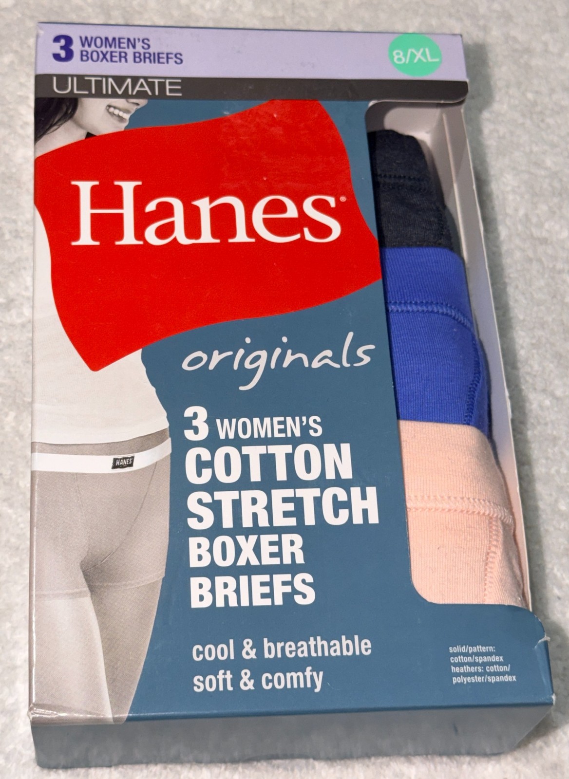 HANES 3 Pk Ultimate Stretch Cotton Grey Pink Blue Boxer Brief Panty Womens XL 8