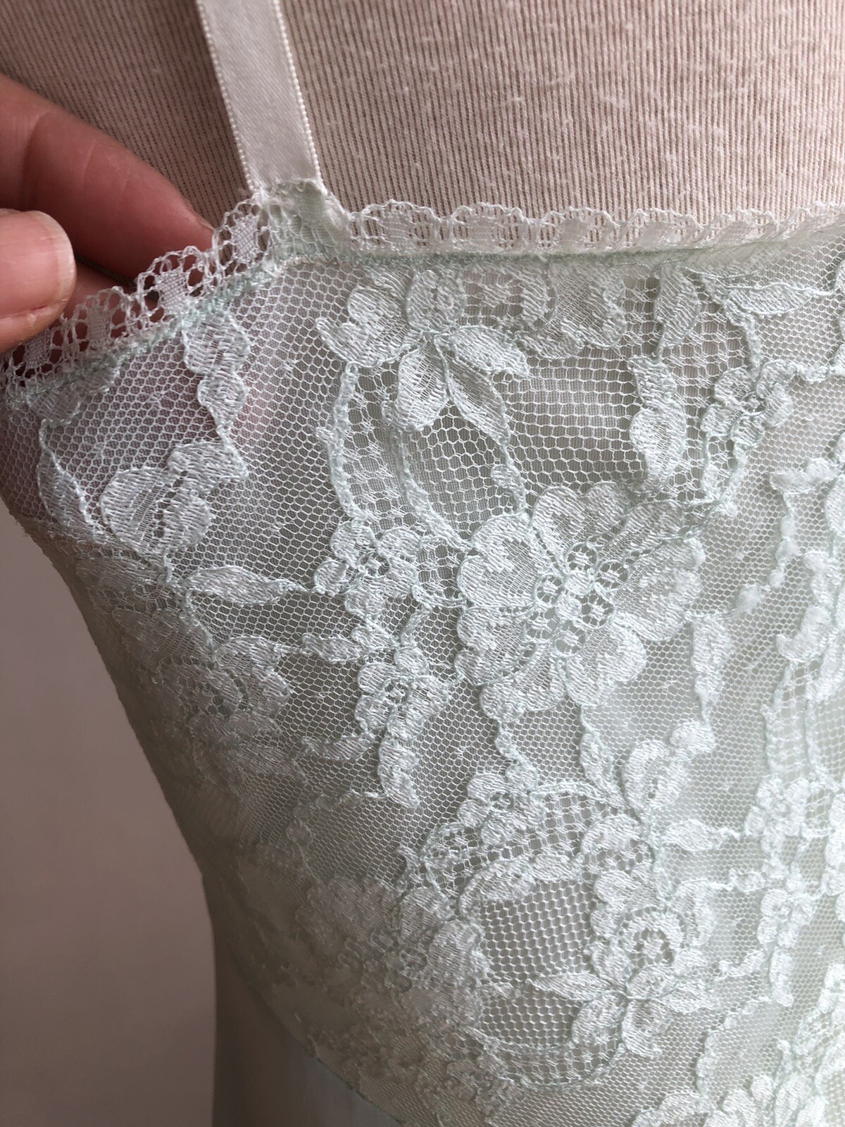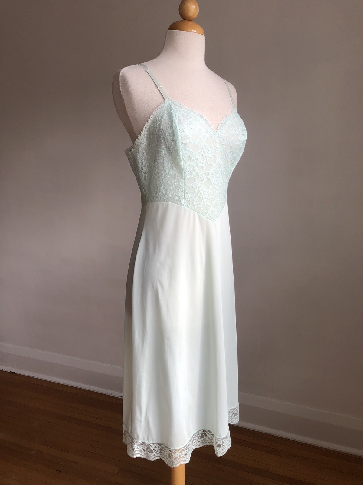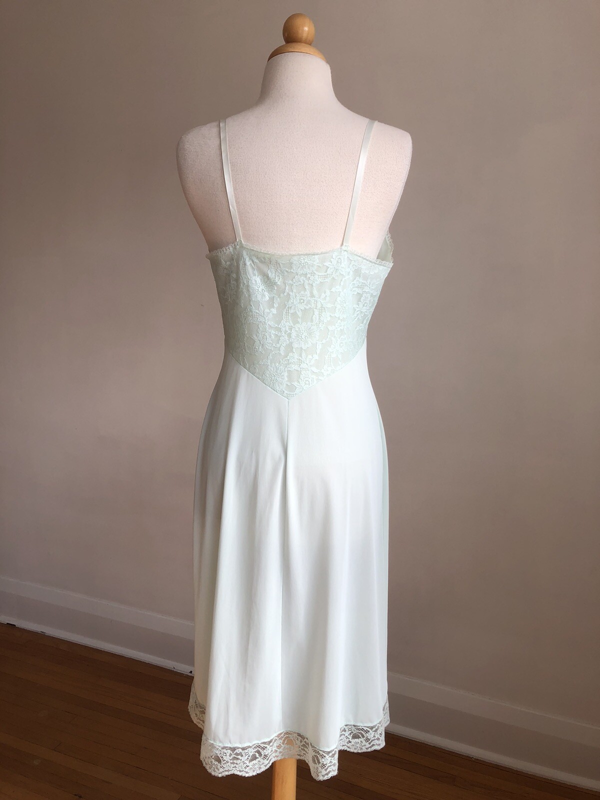 как выглядит STUNNING VTG VANITY FAIR Blue Nylon Lace Full-slip Dress Lingerie SZ 34 Mint фото