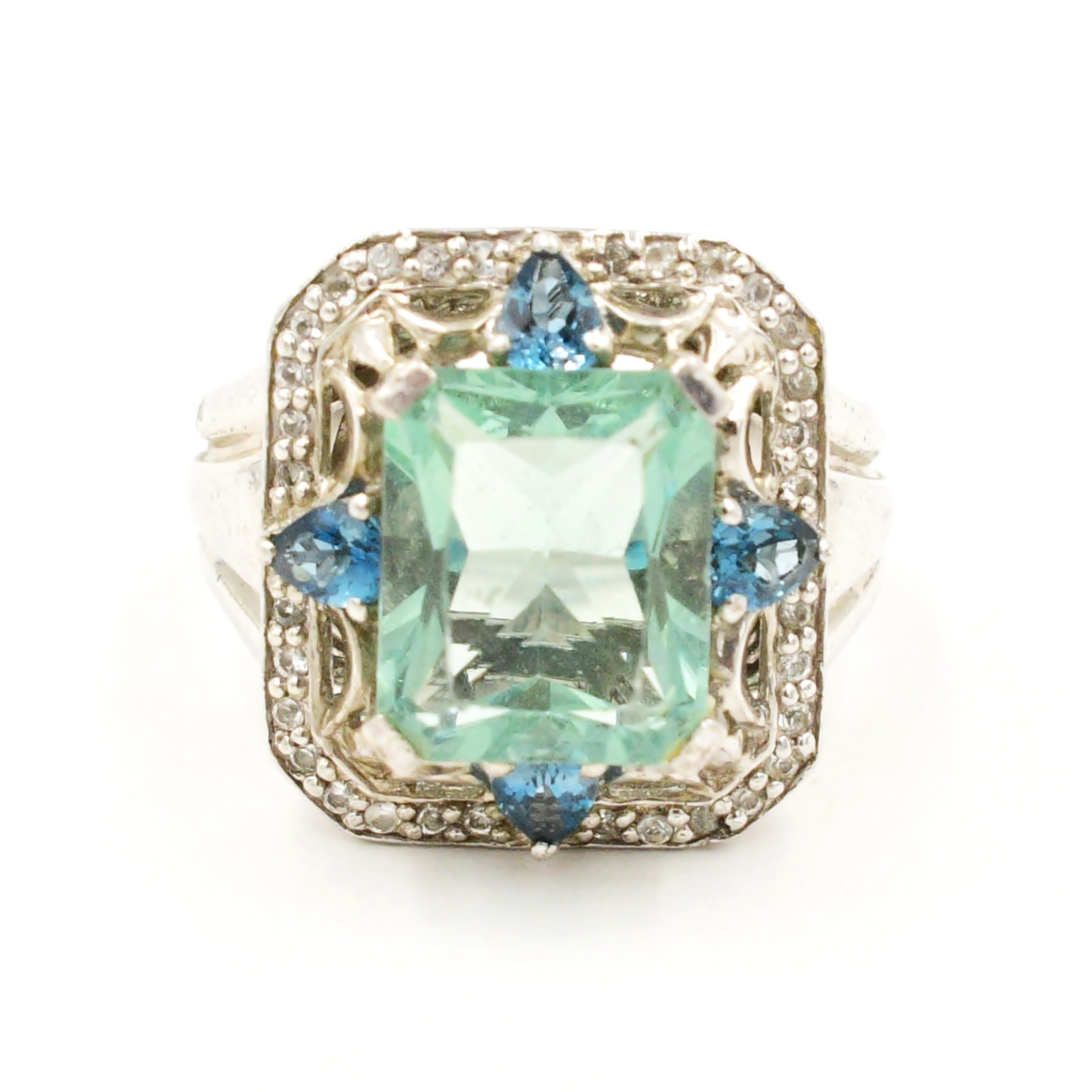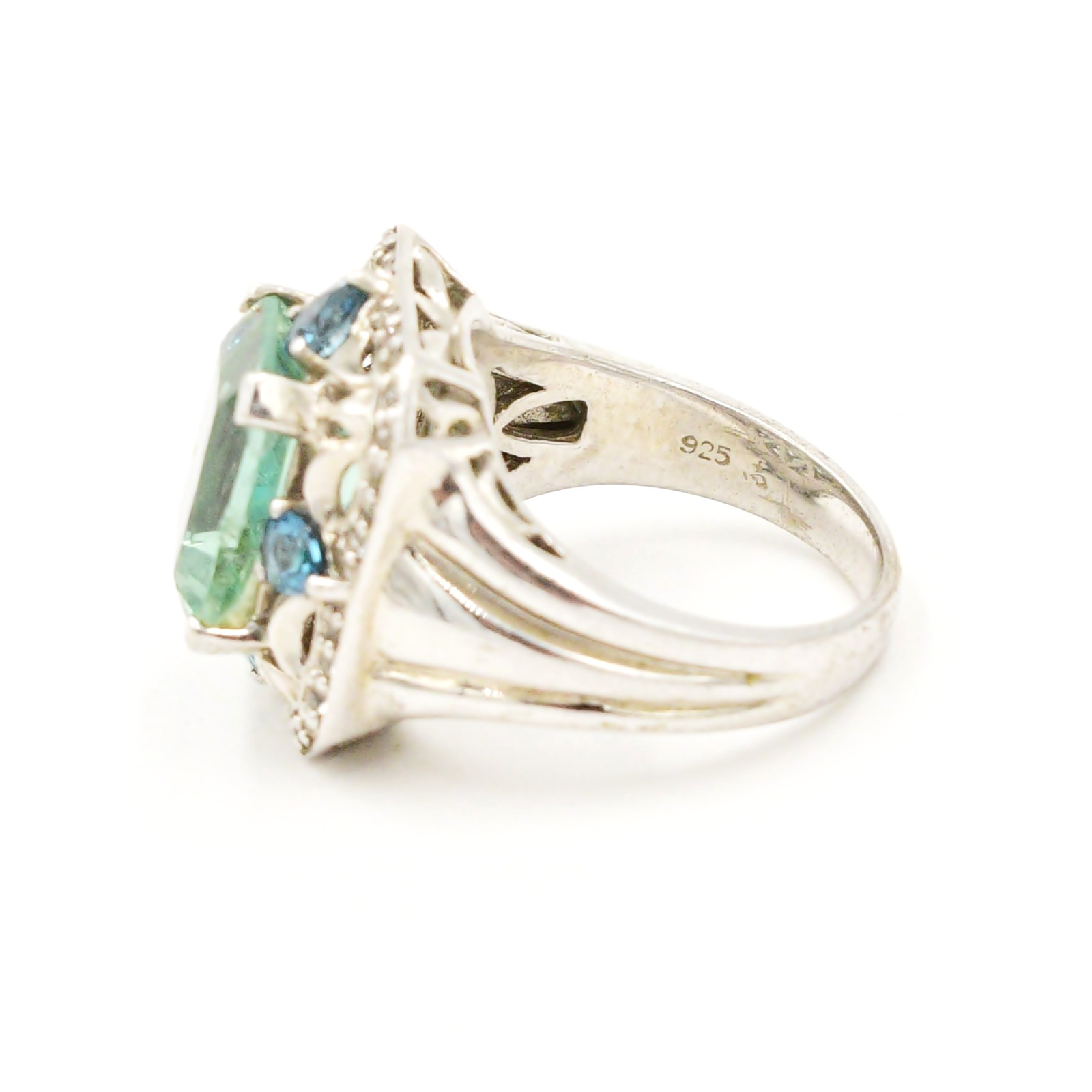 Sterling Silver 925 Green Blue White Spinel Cocktail Ring Size 5.75