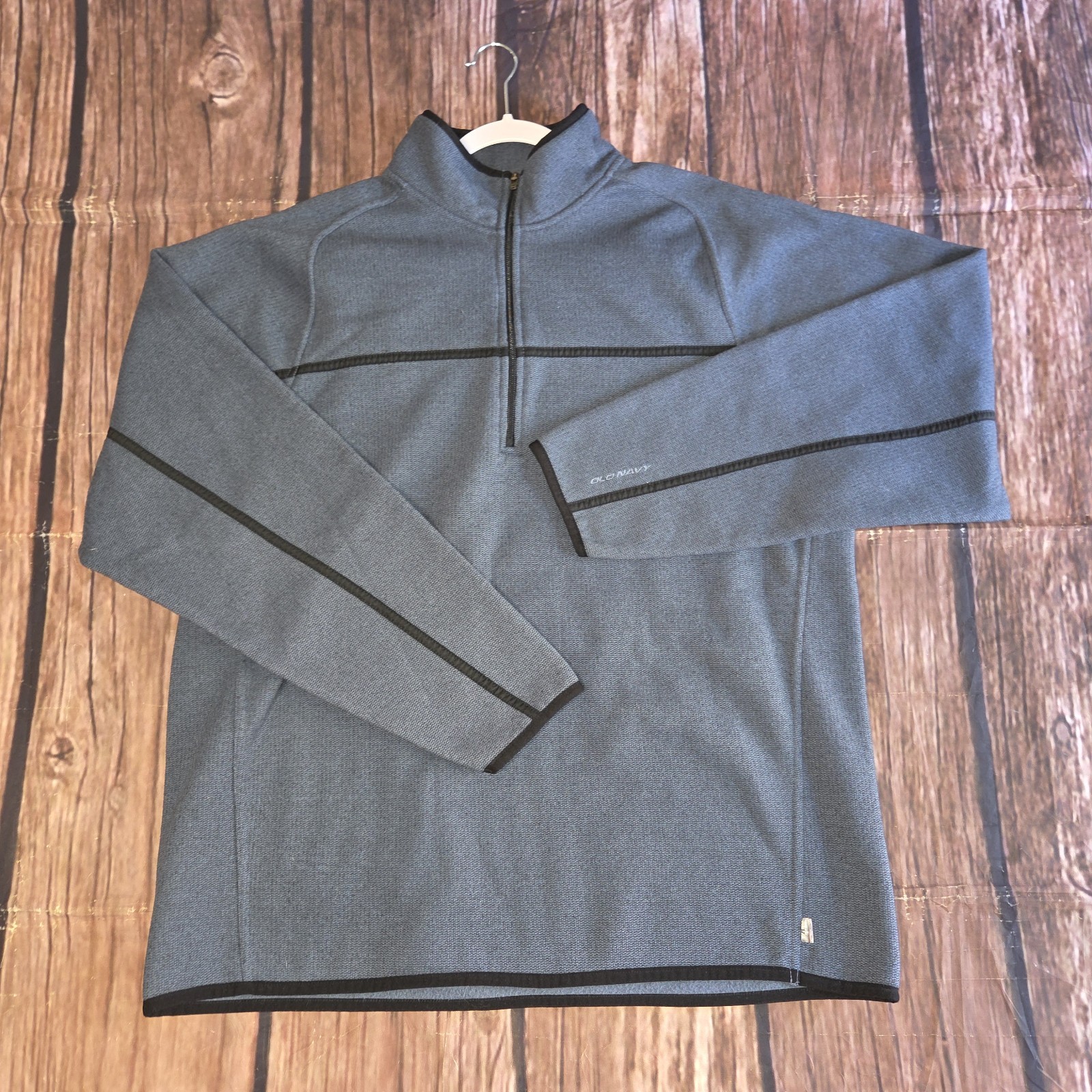 как выглядит Old Navy Men Fleece Sweater 1/4 Zip Mock Neck Black Stripe Pullover Blue Gray XL фото