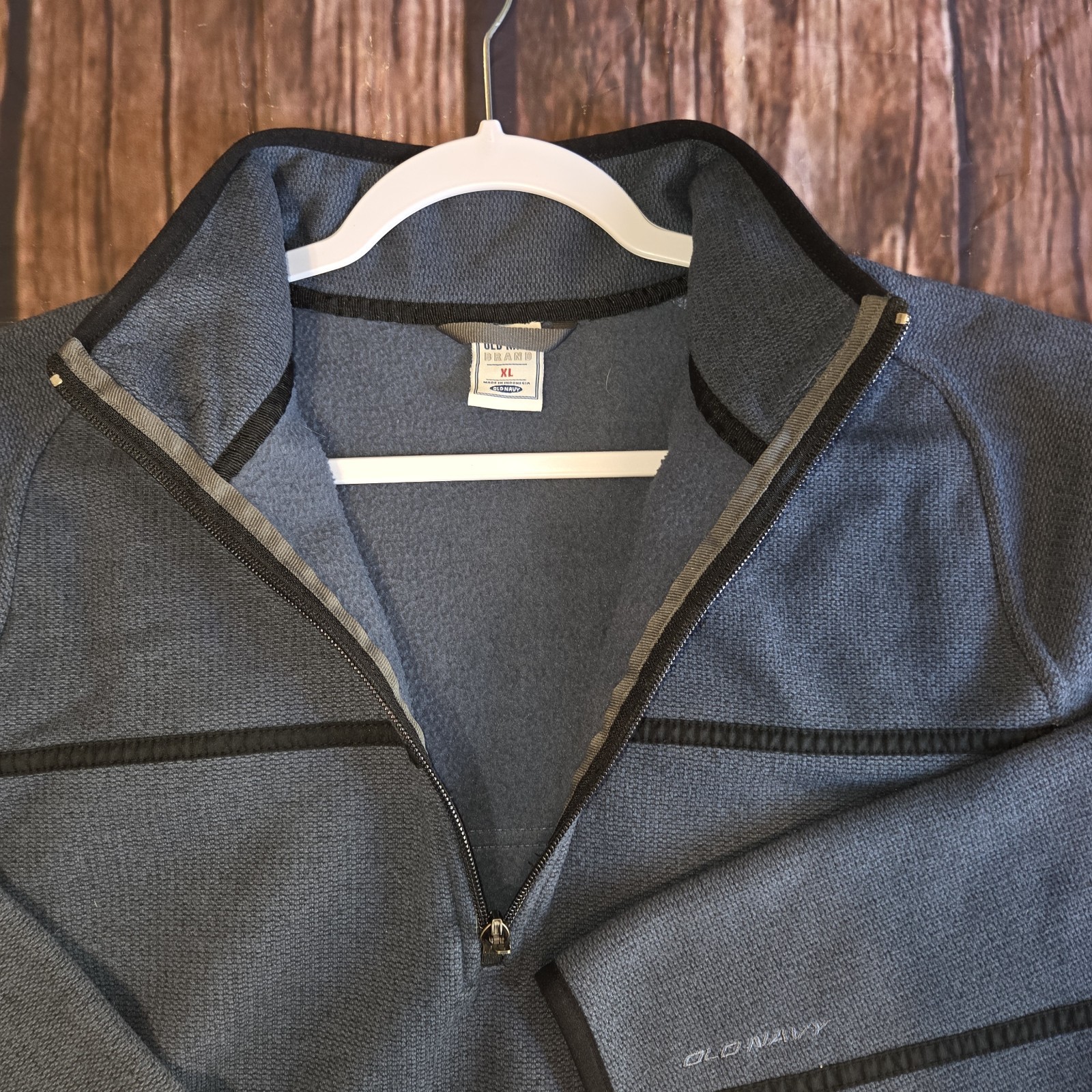 Old Navy Men Fleece Sweater 1/4 Zip Mock Neck Black Stripe Pullover Blue Gray XL