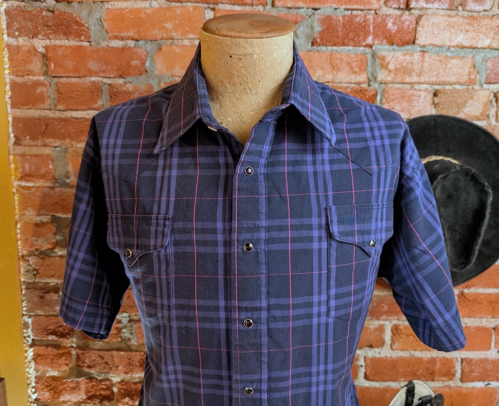 1980s Vintage Flying R Ranchwear Purple Plaid Men's Cowboy Western Shirt - XL