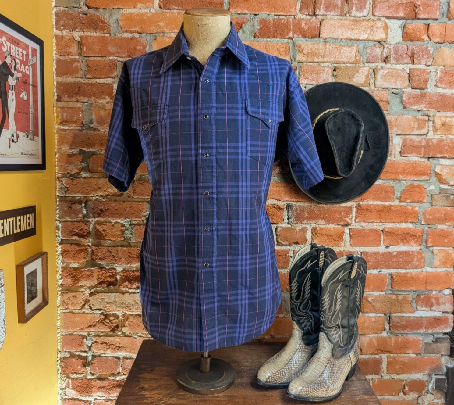 как выглядит 1980s Vintage Flying R Ranchwear Purple Plaid Mens Cowboy Western Shirt - XL фото