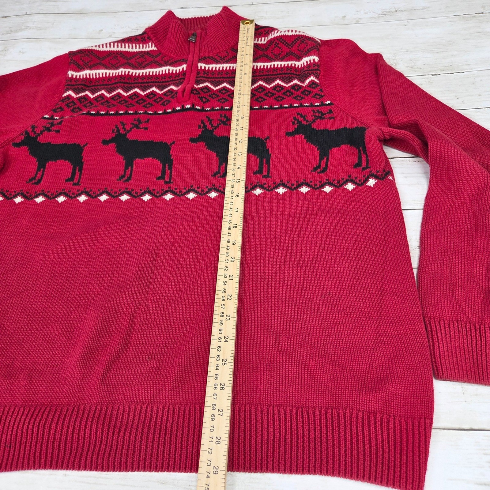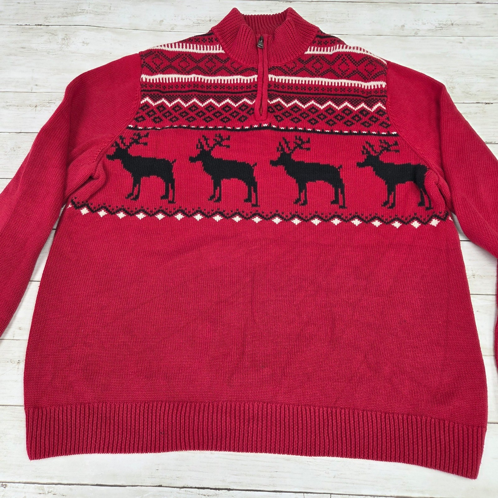 Chaps Mens XXL Red Reindeer Fair Isle Quarter Zip Cotton Sweater Pullover
