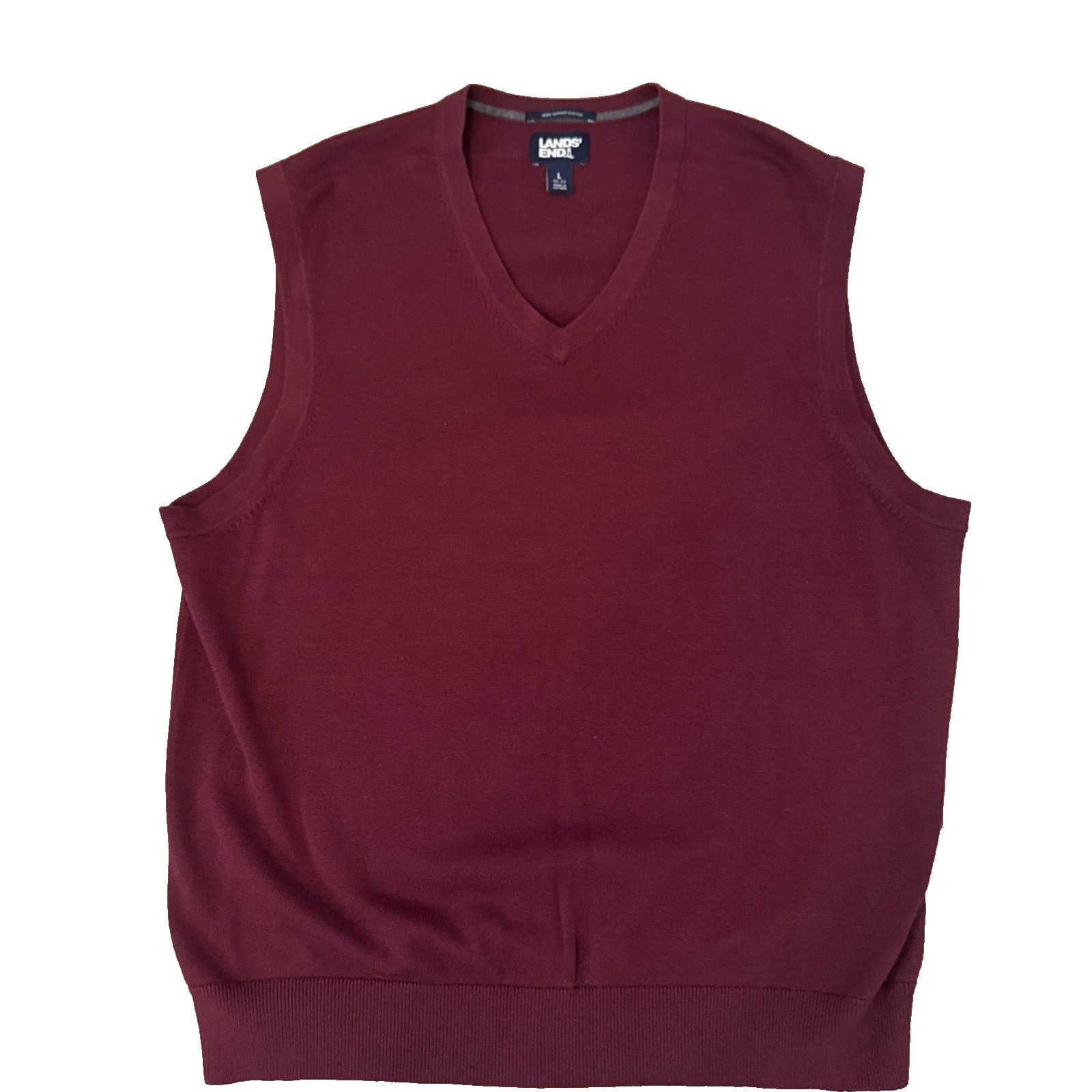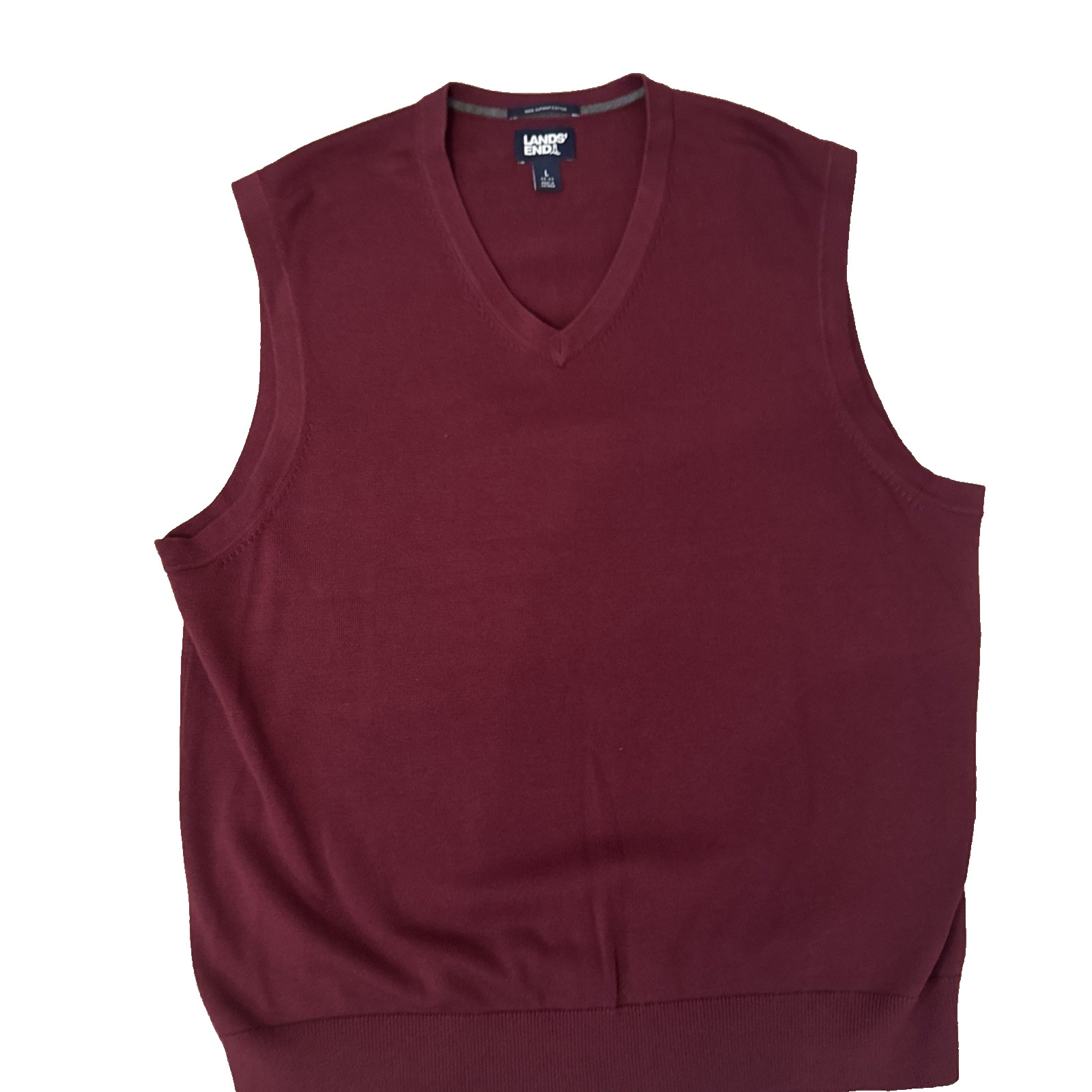Men s Lands End Sweater Vest Sz L 42-44 100 Supima Cotton Burg. Preppy Classic