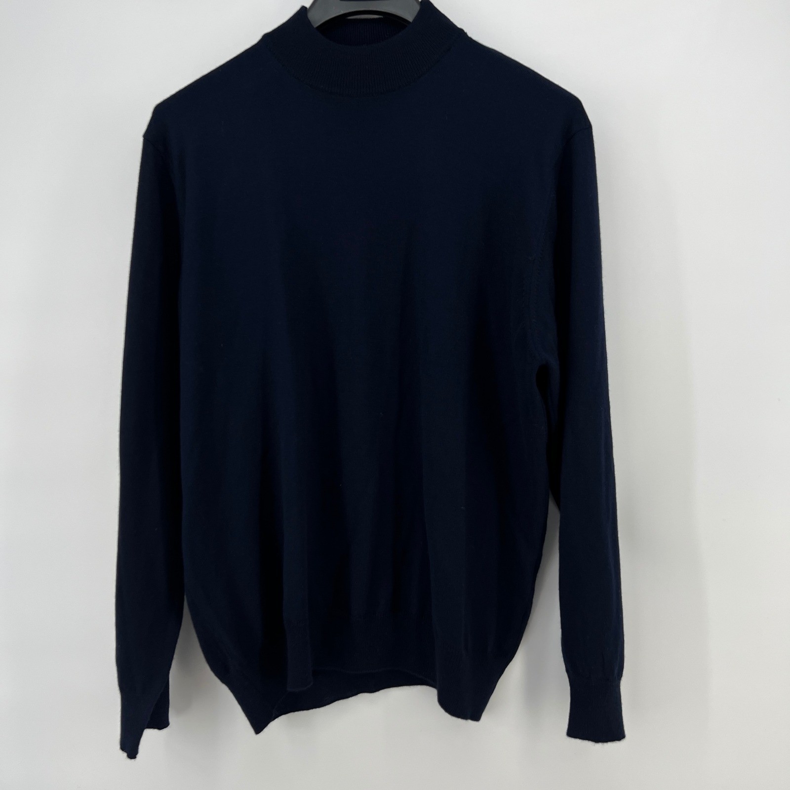 как выглядит Sette Ponti Mens Navy Blue Mock Neck Long Sleeve Sweater Merino Wool Blend Sz XL фото