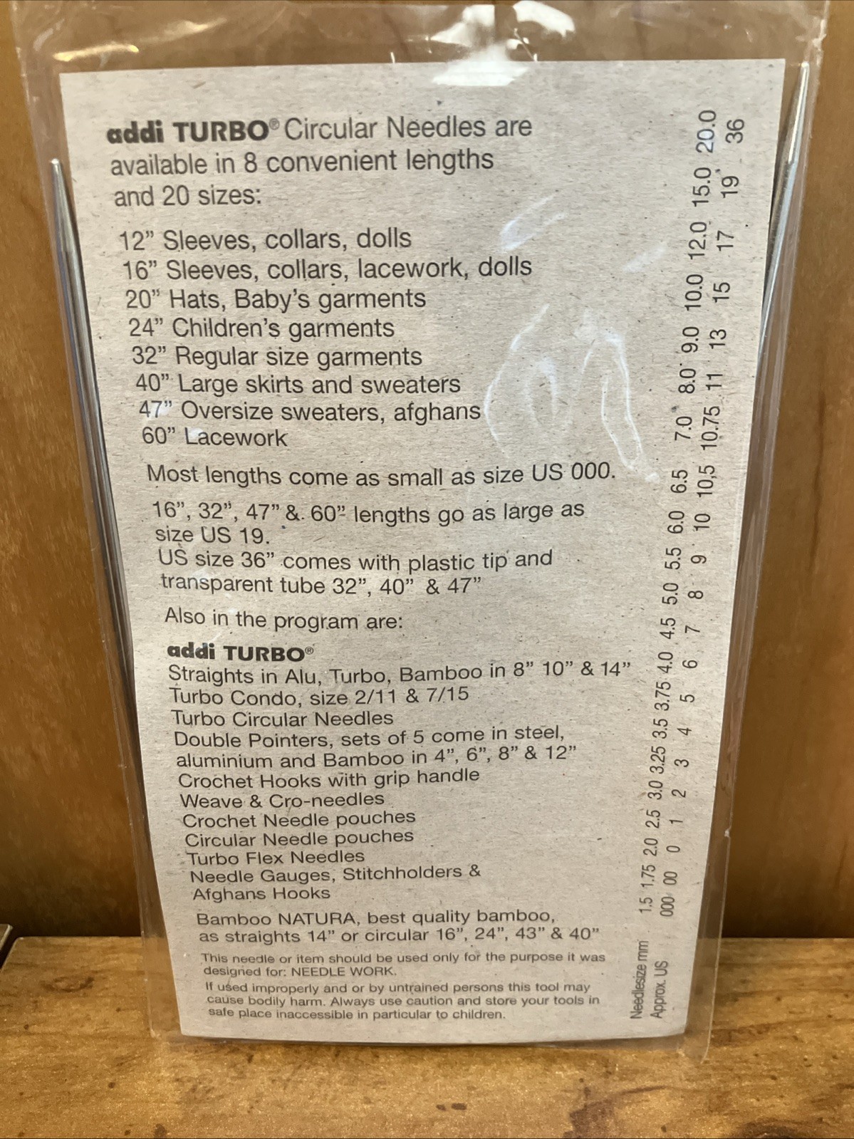 Skacel Addi Turbo Circular Knitting Needle Size 3, 47, Knit Faster, NIP