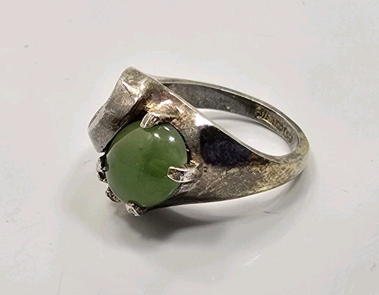 как выглядит Beautiful Vintage Sterling Silver 925 Green Jade Ladies Ring Size 5 фото