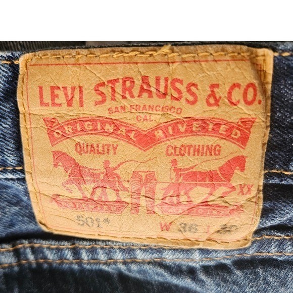 как выглядит VTG Y2K 2004 Levi Strauss 501 Original Fit Button Fly Blue Jeans Mens 36x30 фото