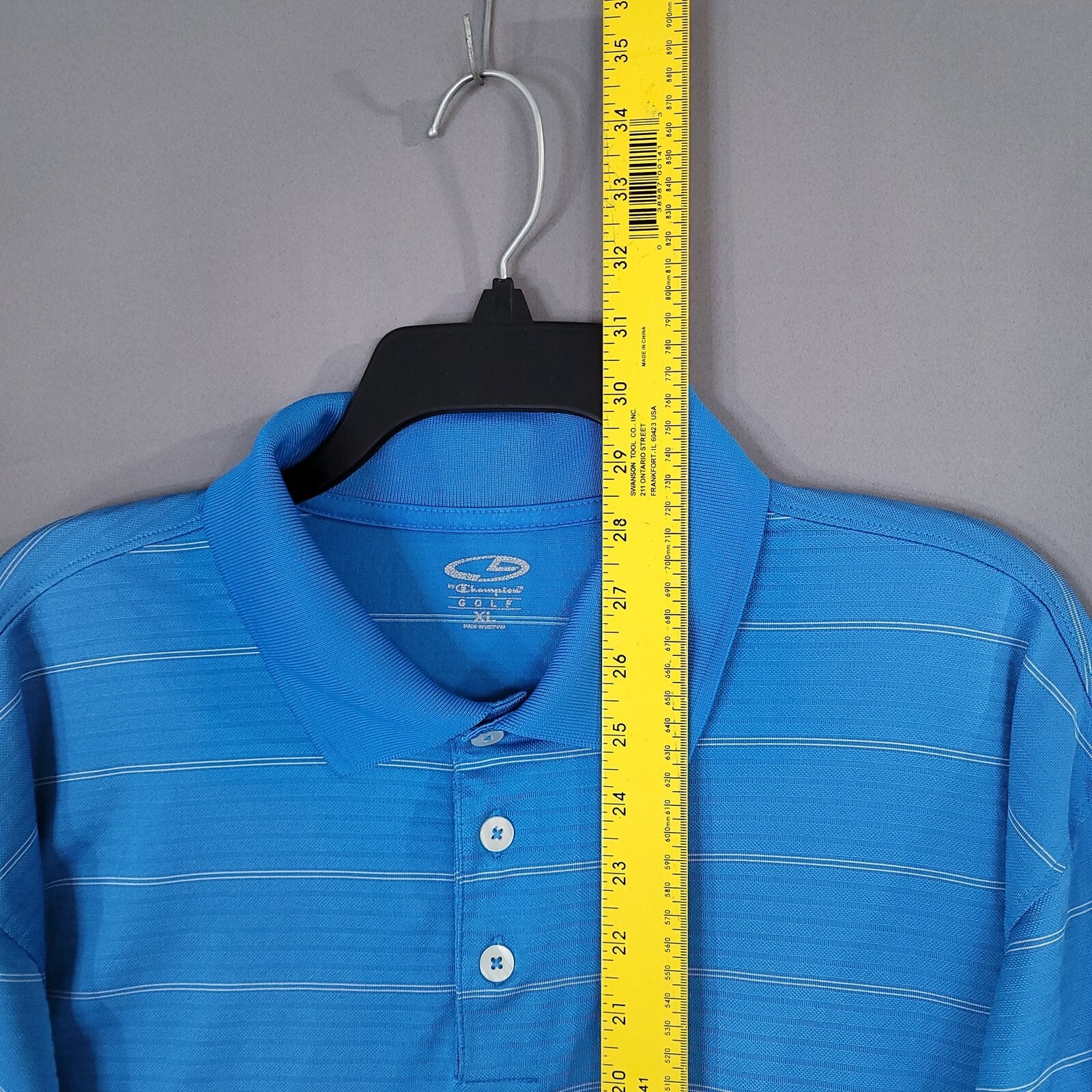 Champion Men's Golf Polo Shirt Short Sleeve Blue White Stripe Size XL