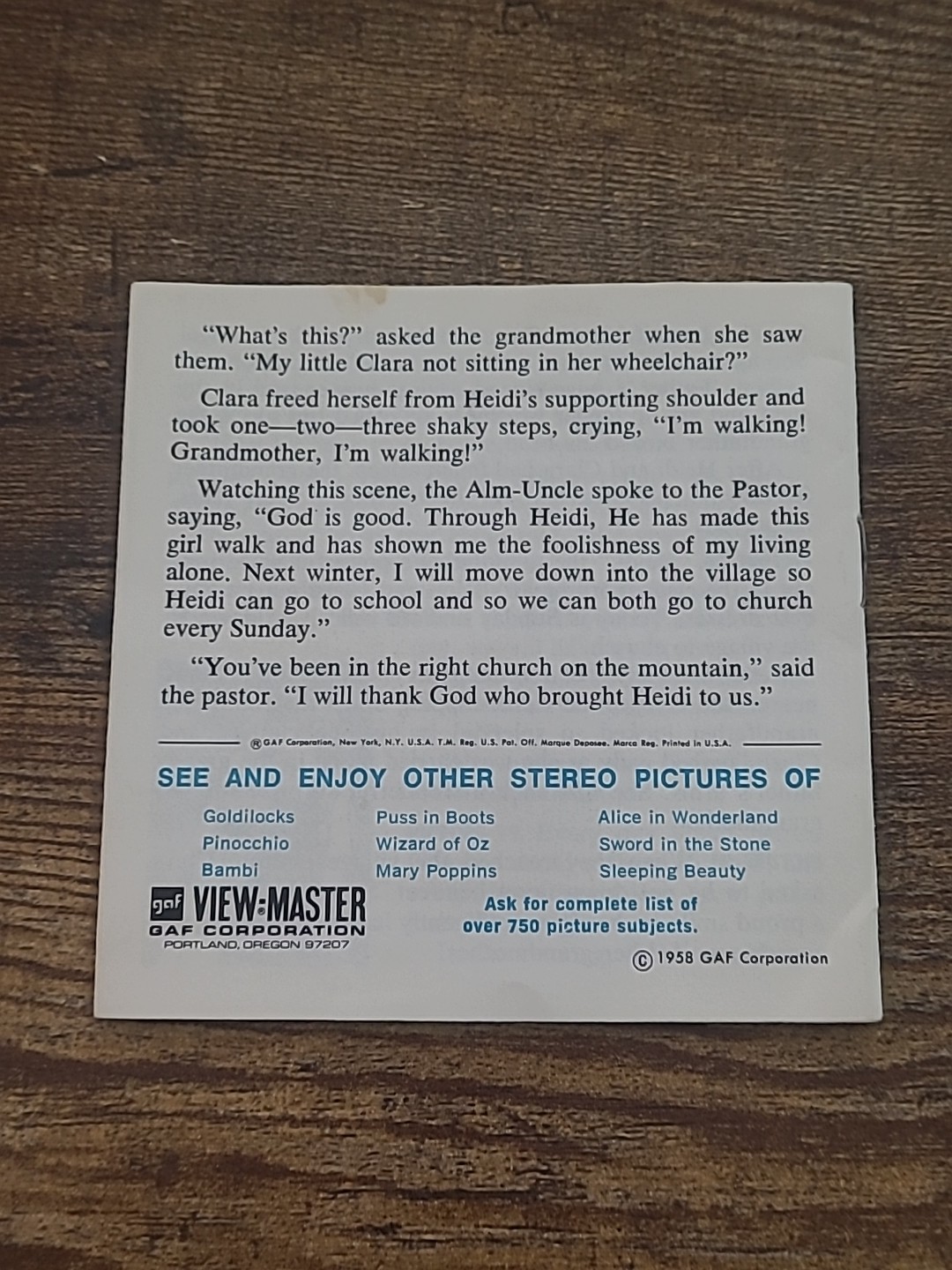 GAF View-Master B 425 HEIDI By Johanna Spyri 1960's Vintage