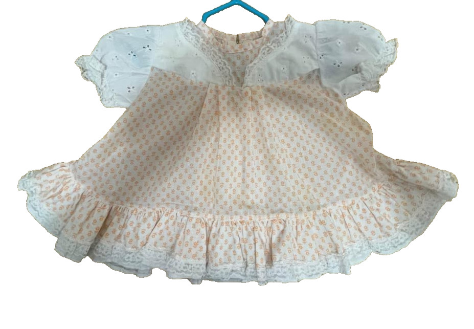 как выглядит VTG Frilly Floral Lace Ruffle Hem Puff Sleeve Dress 80s Girl Infant Sz 0-6 mo фото