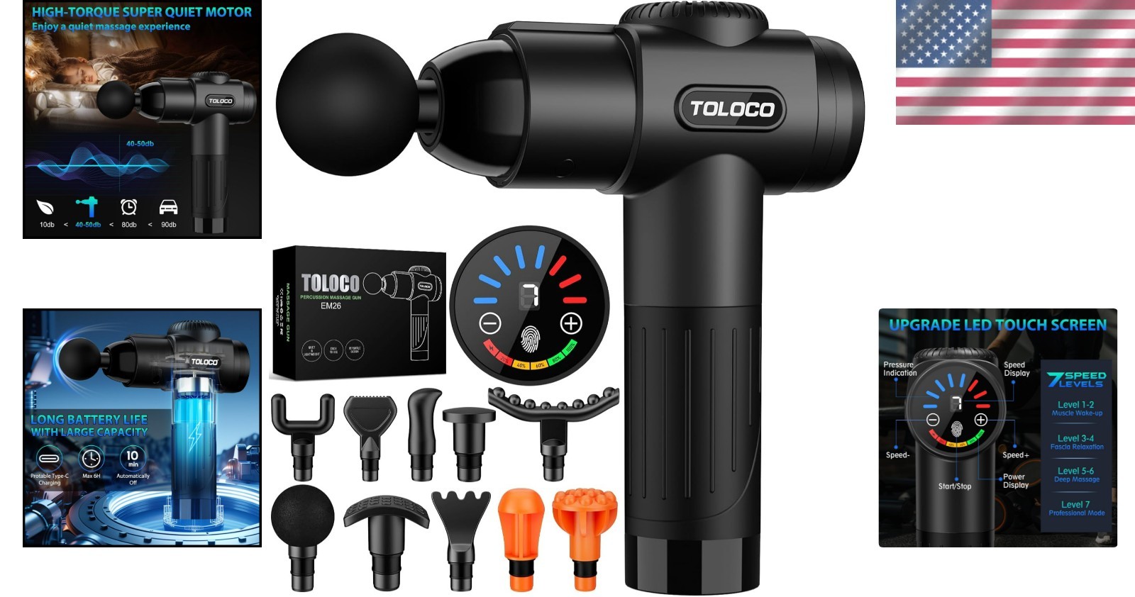 Massage Gun Deep Tissue Percussion Massager with 10 Heads for Pain Relief