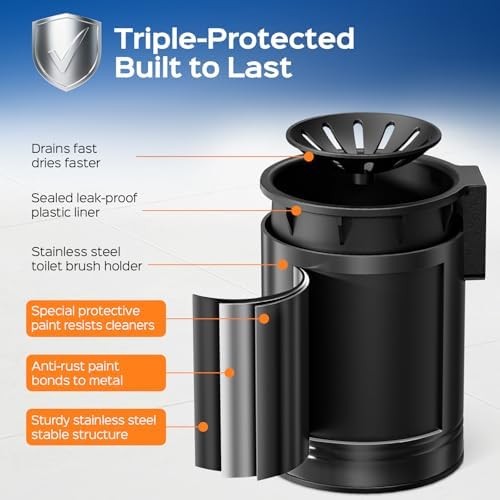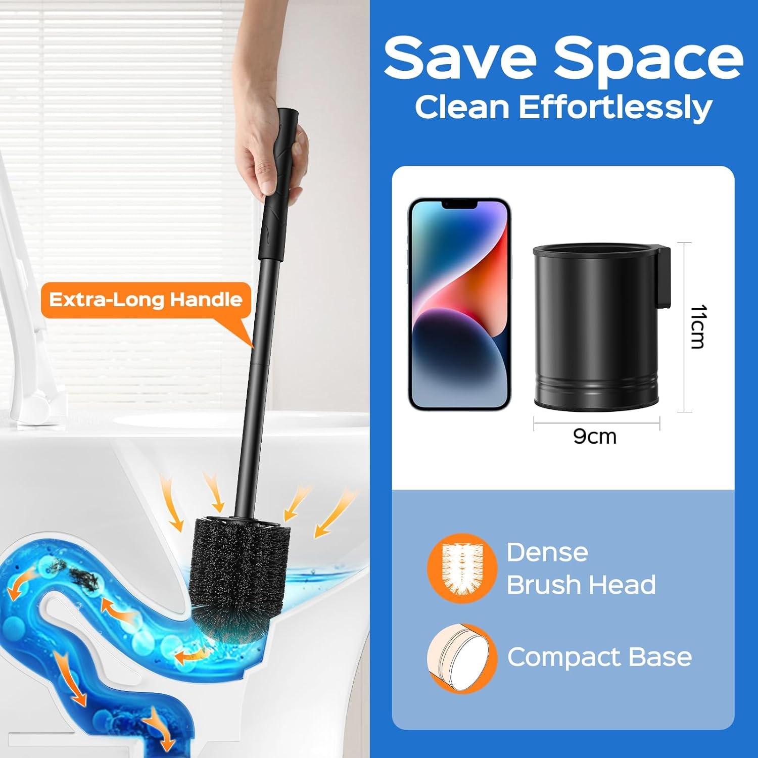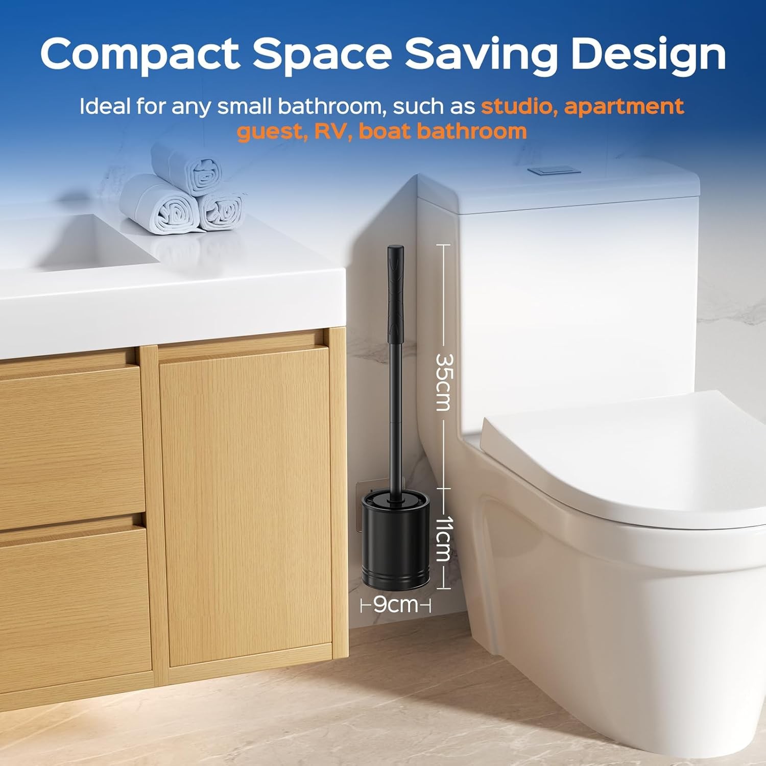 Modern Rustproof Black Metal Toilet Bowl Brush with Holder for Bathroom Cleaning