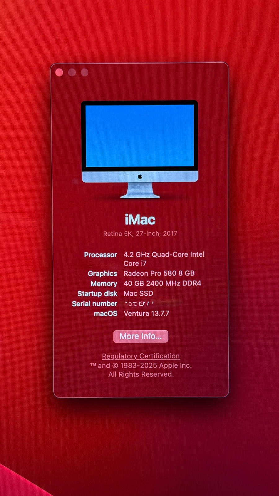 Apple iMac 27 5K 2017 i7 4.2GHz 40GB RAM 500GB SSD Radeon Pro 580 VESA Mount